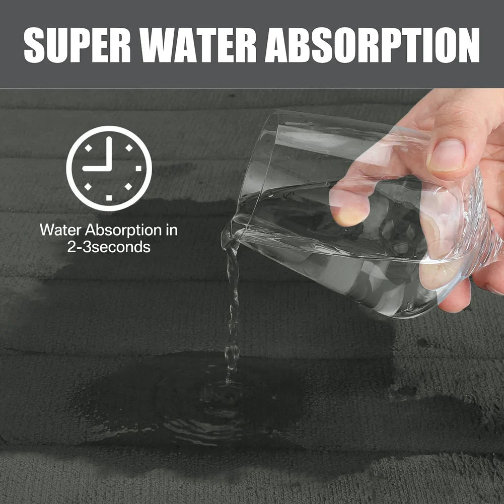 【Super Water Absorption Bath Mats】:Step out of the bathroom with confidence as the plush surface of our memory foam bath mat effortlessly absorbs moisture from your feet, keeping them dry and protected from the cold floor. Experience ultimate comfort and warmth you can rely on.