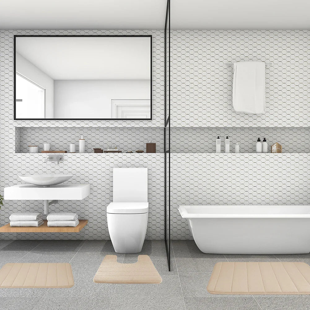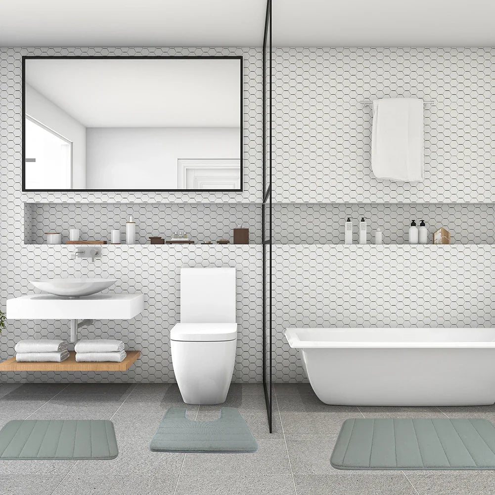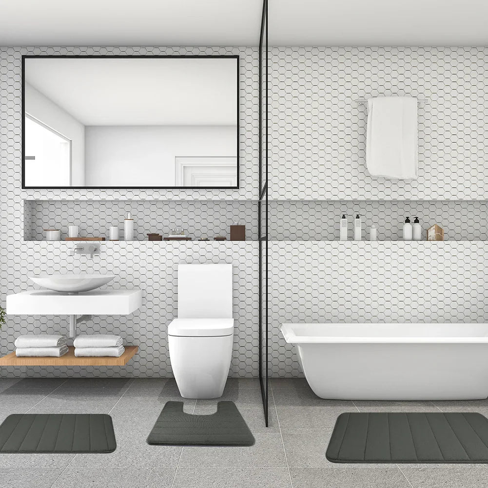 3Pcs Memory Foam Bath Mats Set 40x60CM 50X80CM Rectangle and U-Shaped Bathroom Rugs Non-Slip Soft Water Absorption Toilet Mats