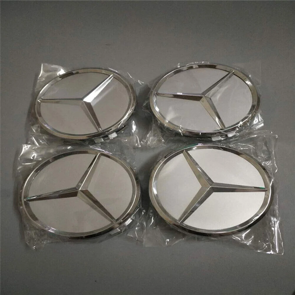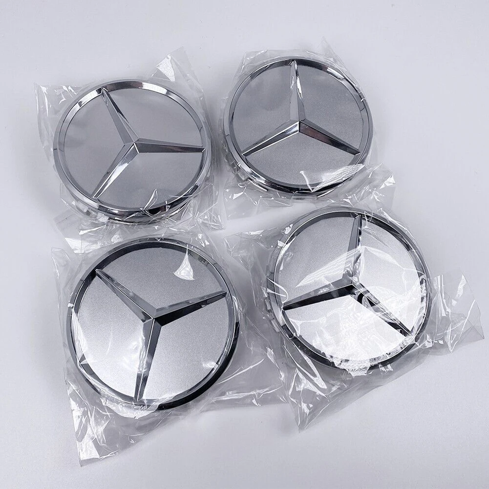 4/8Pcs Car Wheel Center Caps Silver 75MM Rims Wheel Center Caps Wheel Center Hub Caps Emblem for Benz All Models