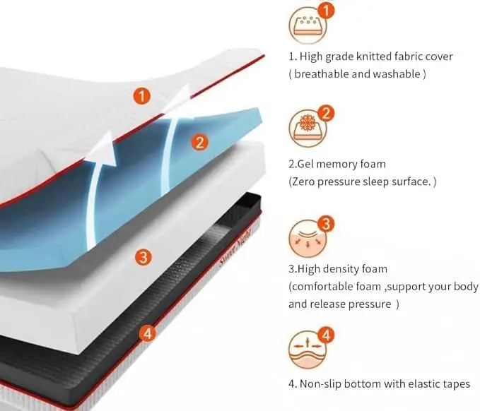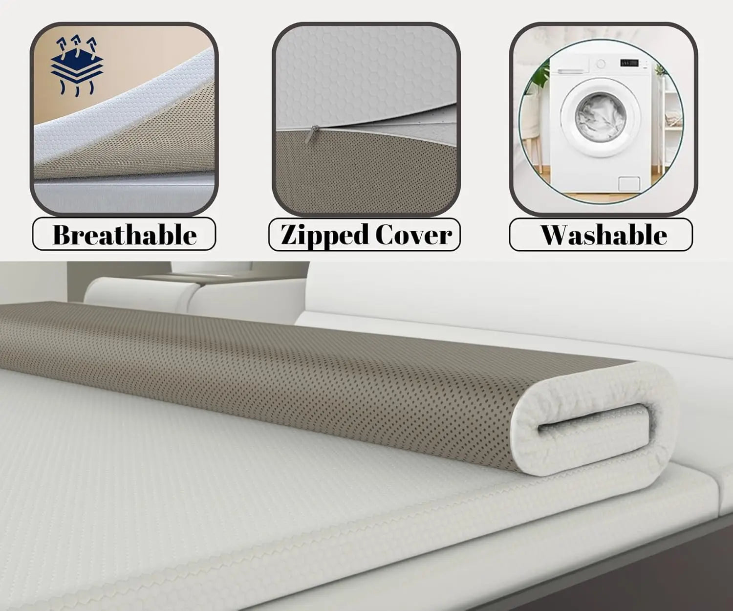 4 Inch Memory Foam Mattress Topper DOUBLE Bed, 10cm Thick Gel Infused Orthopedic Mattress Pad, Removable Washable Zipped Cover