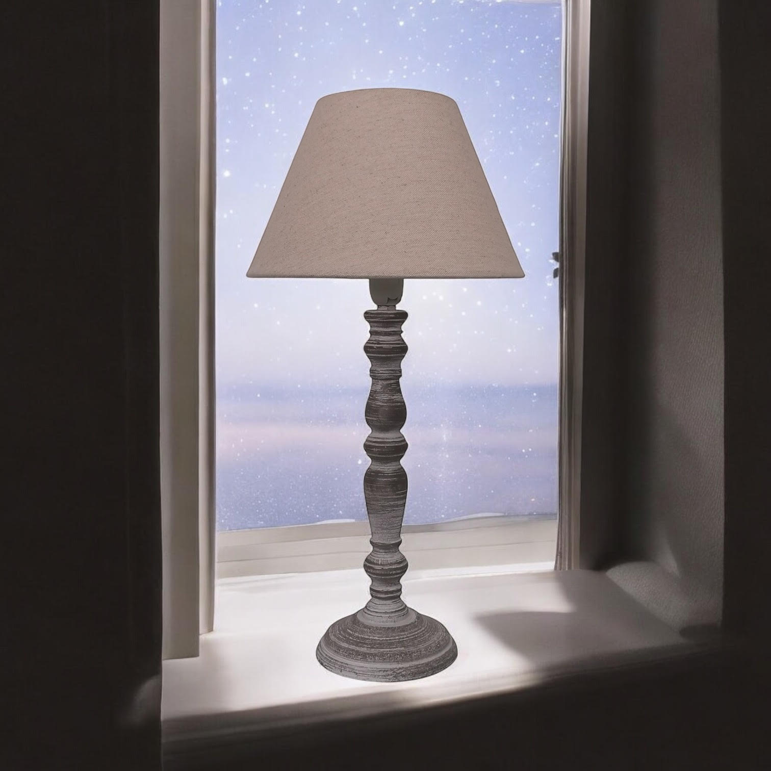 A traditional design table lamp base and shade. The lamp is individually switched by an inline rocker switch and is double insulated to allow for safe use without need of an earth wire. Great for lighting in any setting and ideal in a living room or bedroom., In Line switchLinen shade