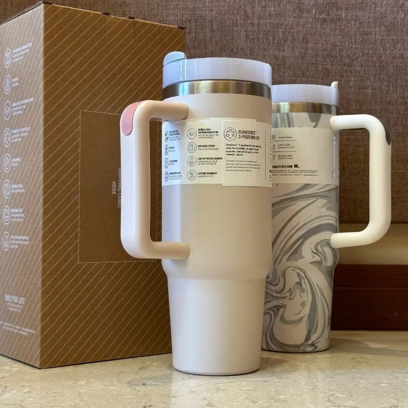 40oz Insulated Tumbler With Lid and Straws Stainless Steel Coffee Tumbler with Handle Vacuum Leak Proof Coffee Cup