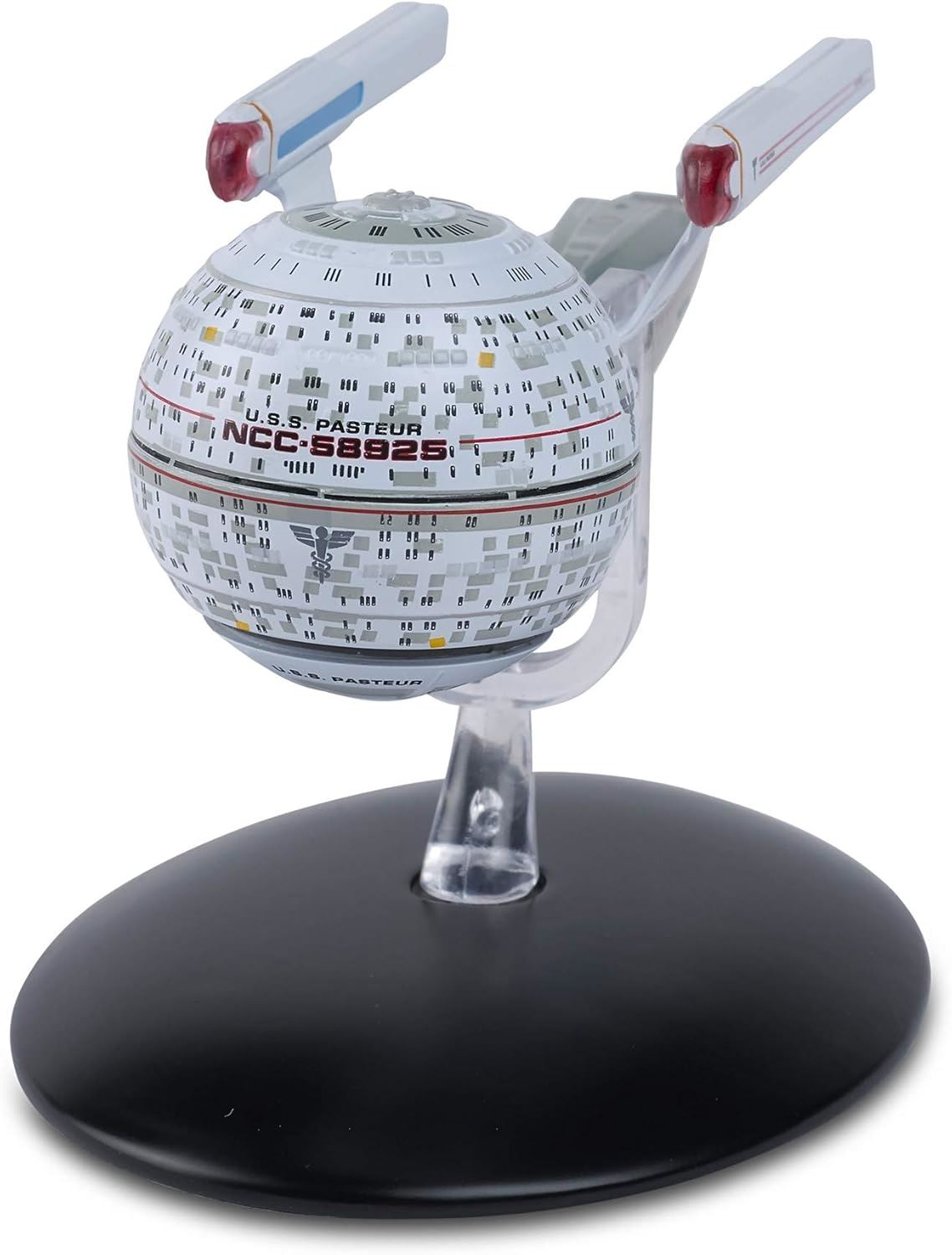 This Eaglemoss model is a meticulously crafted replica of the U.S.S. Pasteur, measuring approximately 5 inches (13 cm) in length. Constructed from die-cast metal and high-quality ABS materials, it faithfully captures the ship’s distinctive spherical primary hull, streamlined design, and medical vessel aesthetics. Each model is hand-painted, ensuring intricate detailing, screen-accurate colors, and authenticity.