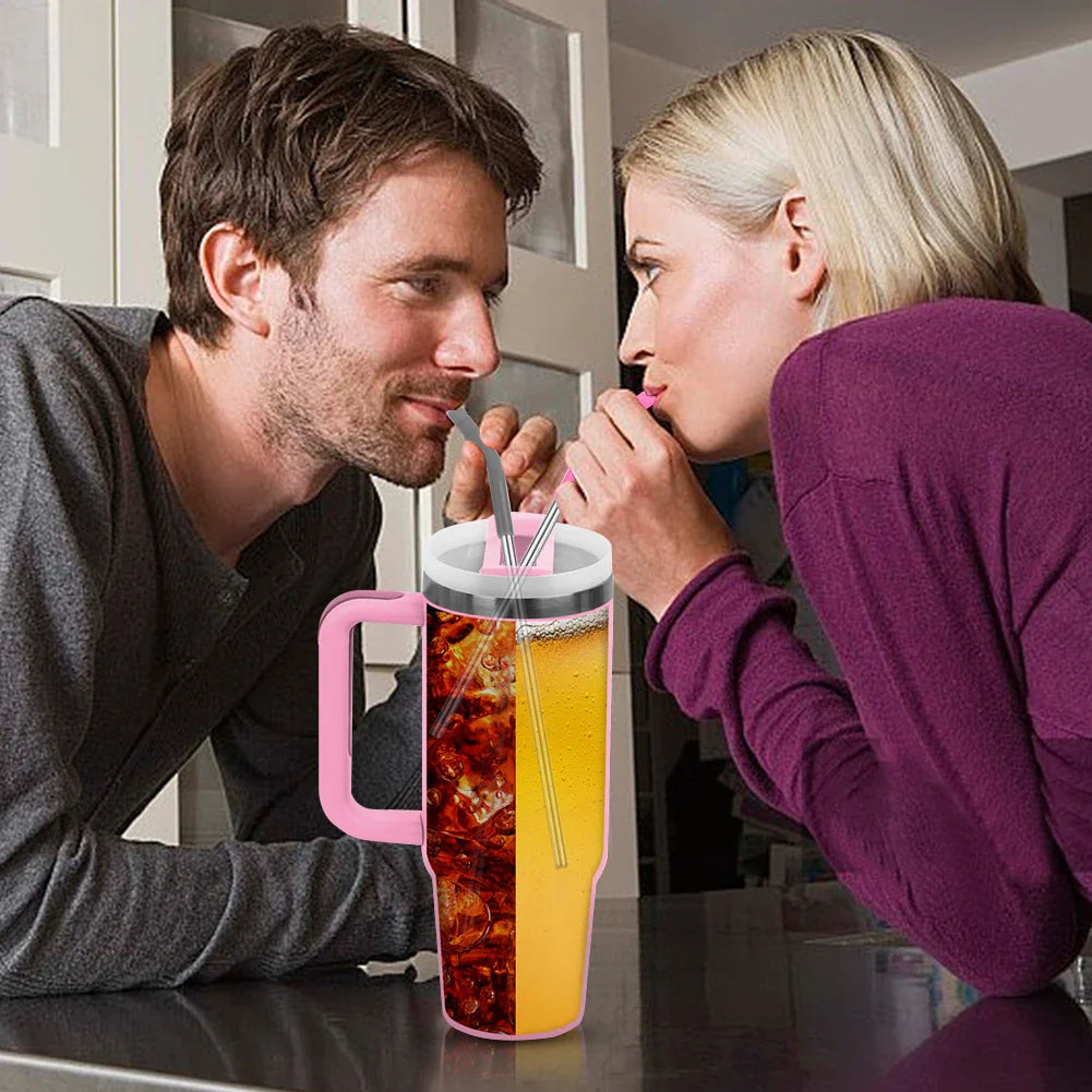4Pcs Reusable Metal Straws with Silicone Tips Cleaning Brush Stainless Steel Straws Replacement with Cover for Stanley 40oz Cup