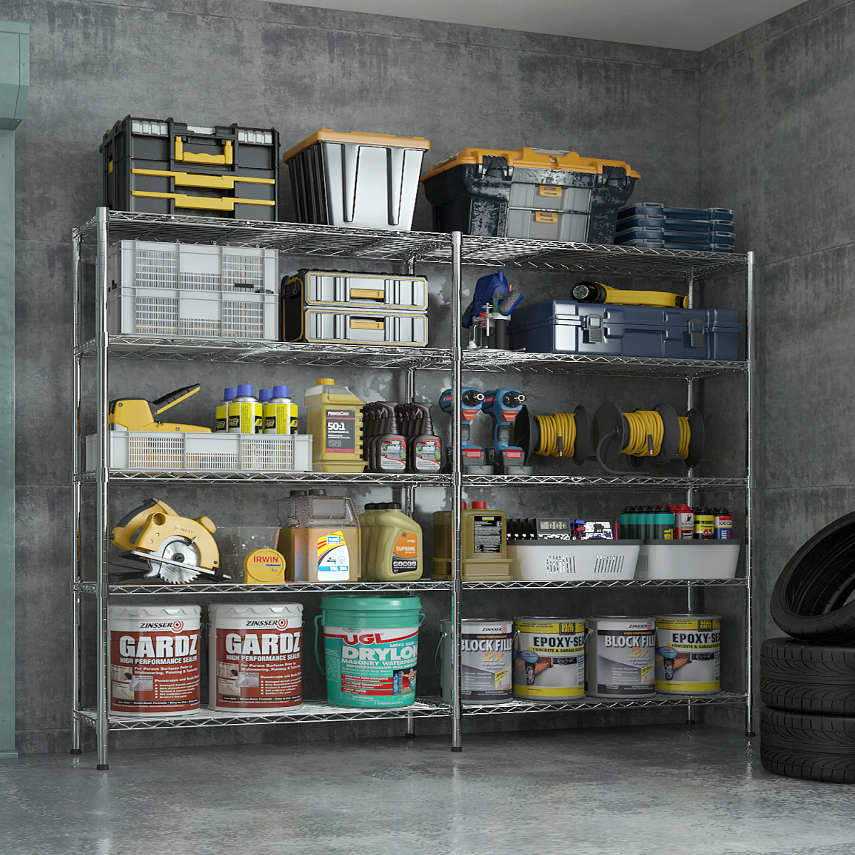 Maximize your storage and display space with this 5-tier double-row chrome-plated iron shelf! Featuring a spacious 177×40×180cm design, this versatile rack offers fully adjustable tier spacing to accommodate items of all sizes. The high-quality electroplated chrome finish ensures durability and a sleek, modern look that complements any decor. Equipped with adjustable stabilizing feet, it remains steady on uneven surfaces. Perfect for homes, offices, or retail stores, this lightweight (16.7kg) yet sturdy shelf is ideal for organizing books, tools, plants, or merchandise. Conveniently packaged (91.5×41.5×33.5cm) for easy shipping and assembly.