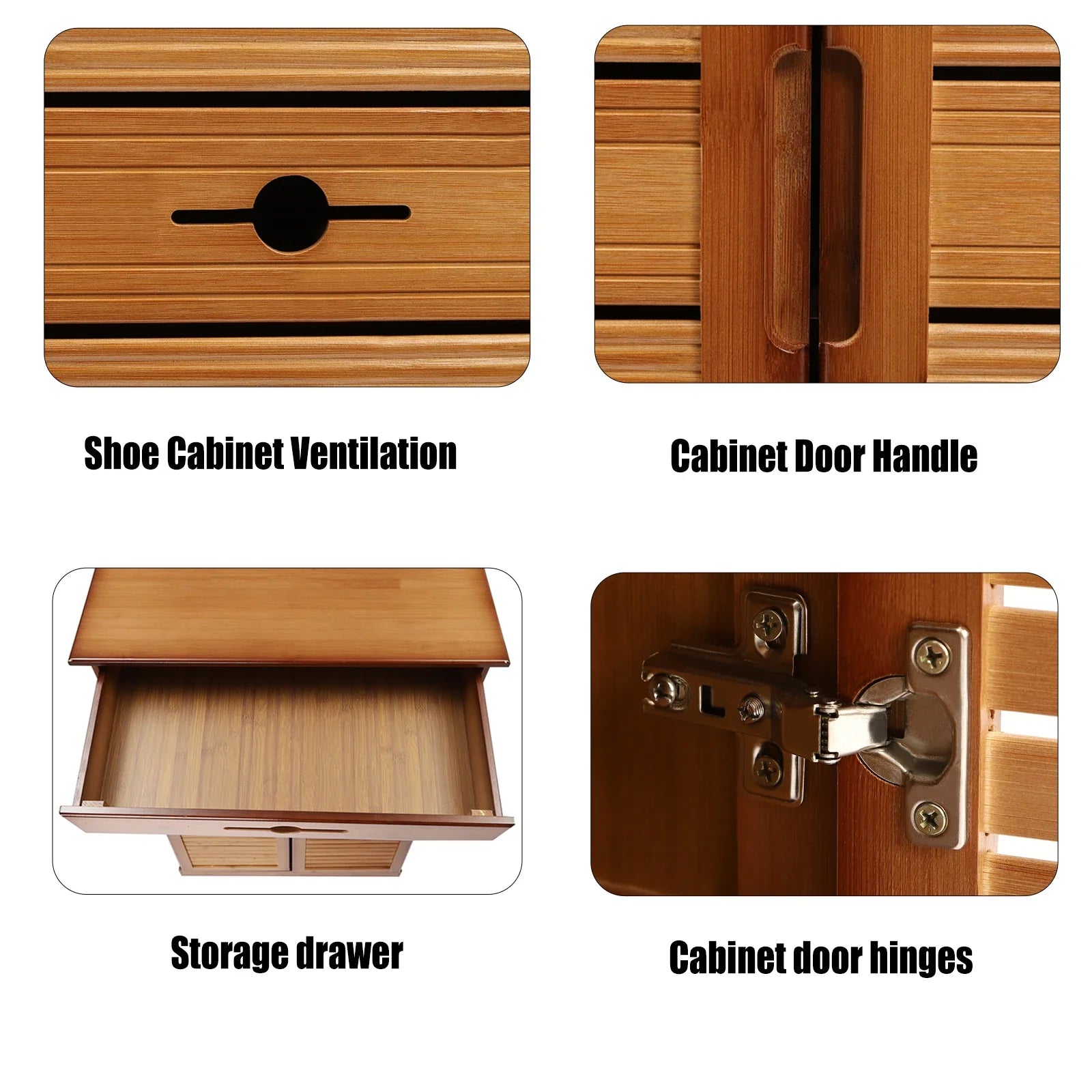 5-Tier Bamboo Shoe Storage, Retro Entryway Shoe Cabinet Shoe Organizer with 1 Drawer and 2 Doors
