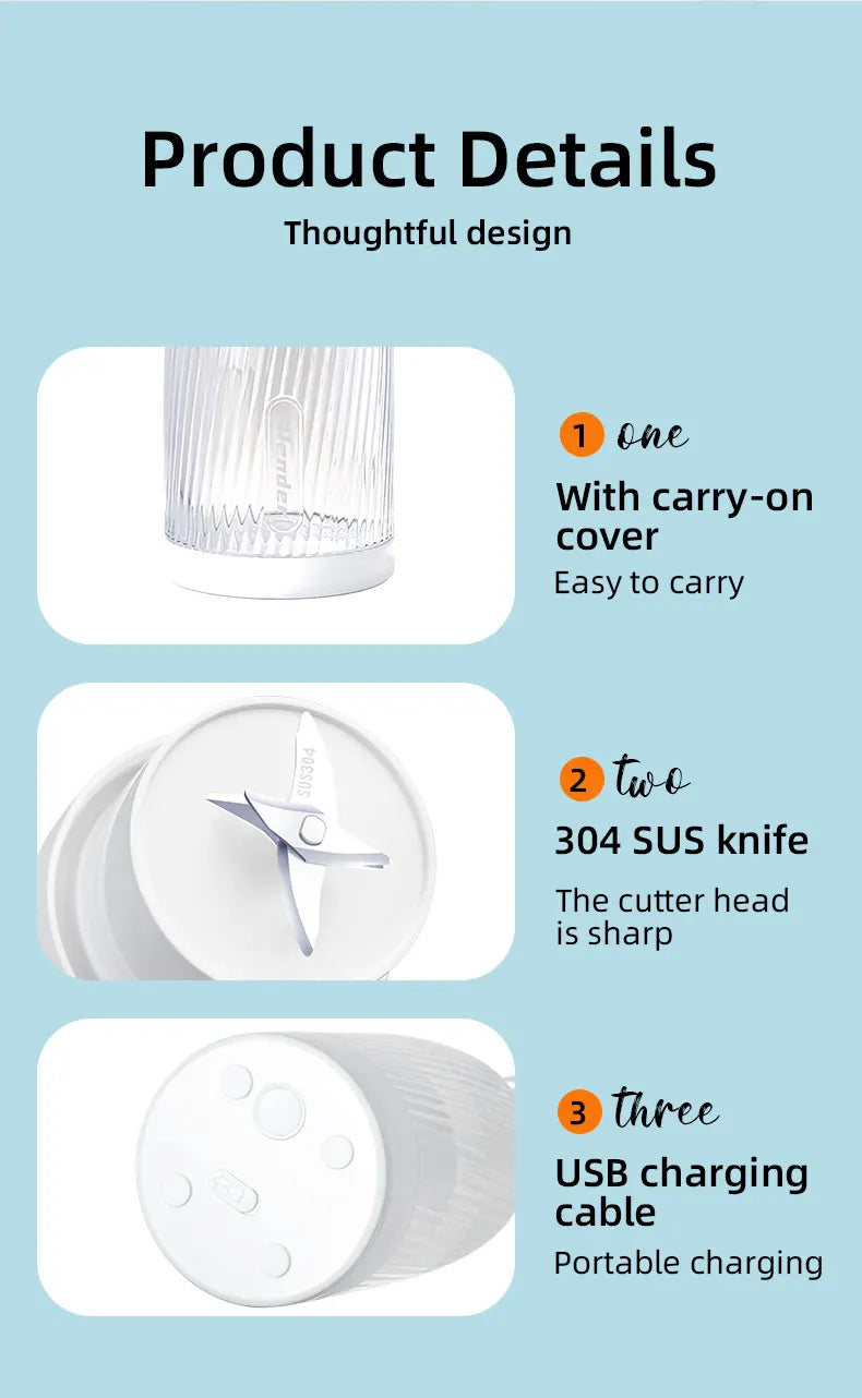500ML Portable Blender Electric Juicer Fruit Mixers USB Rechargeable Blender juice Cup Bottle 6 Blades