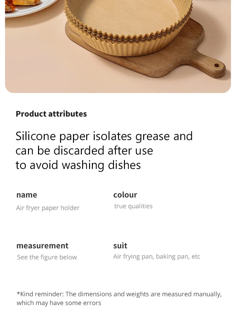 • Specialized Air Fryer Paper :These 50PCs air fryer special paper food silicon oil paper are designed specifically for air fryers, providing a perfect fit and enhancing cooking performance.