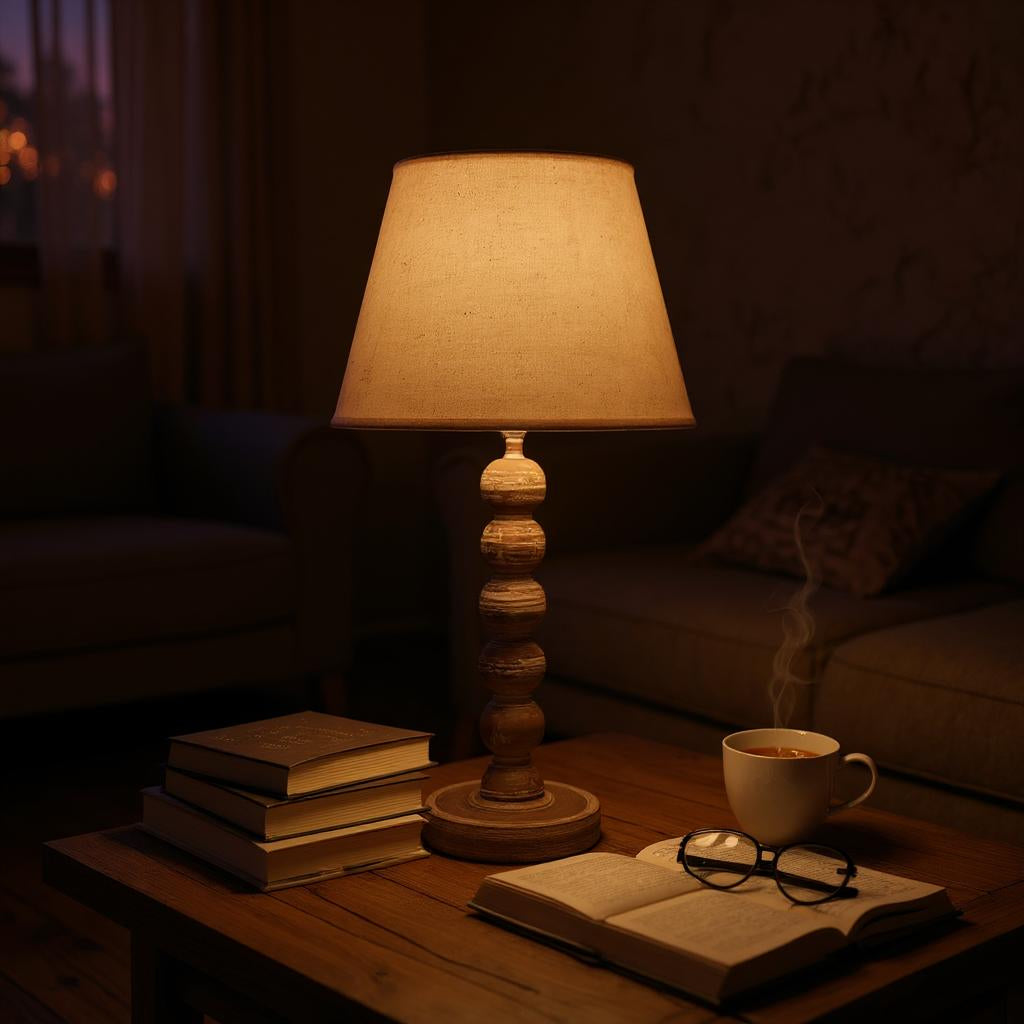 A traditional design table lamp base and shade. The lamp is individually switched by an inline rocker switch and is double insulated to allow for safe use without need of an earth wire. Great for lighting in any setting and ideal in a living room or bedroom., In Line switchLinen shade