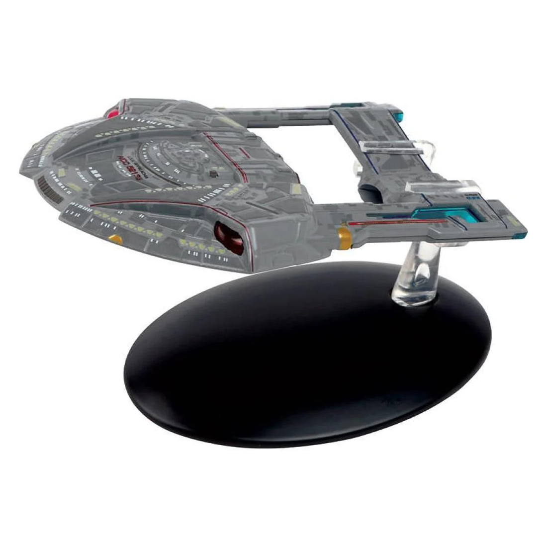 The U.S.S. Appalachia NCC-52136 was a Federation starship in service with Starfleet during the late 24th century. It featured a unique saucer design and a separate secondary hull, which is joined at the aft to the ship's nacelles. As defensive war vessels, these ships shielded Starfleet in the Battle of Cardassia, Dominion War, and Battle of Sector 001 against the Borg.The starship comes in a special box that you can proudly display at home or in the office.