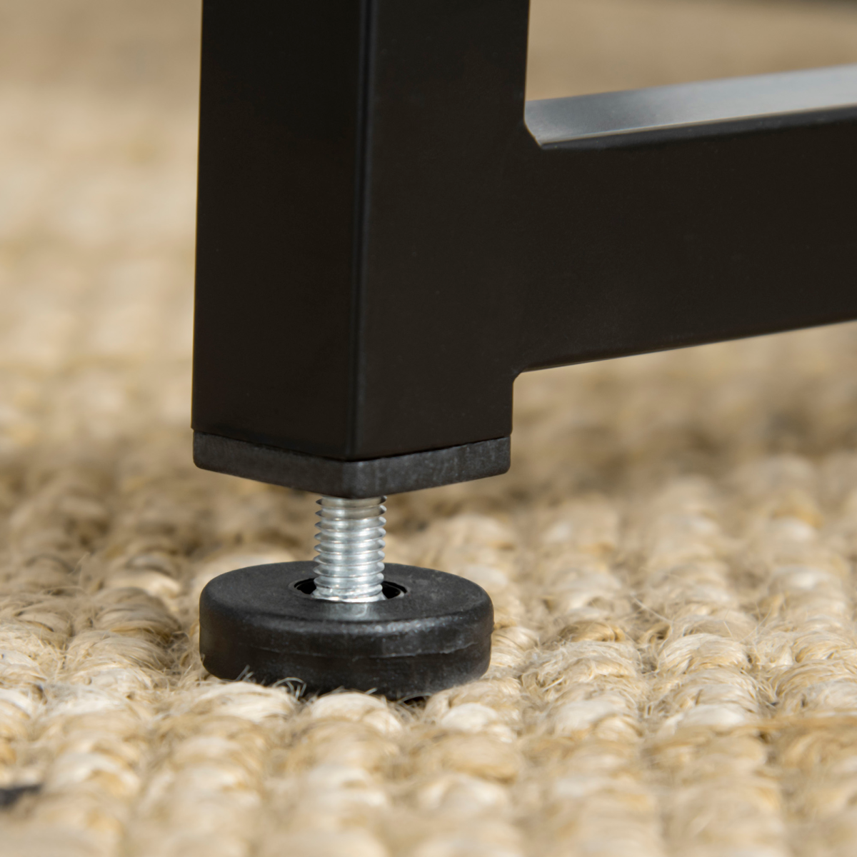 ? Strong and sturdy metal frames, with bottom bar to rest feet