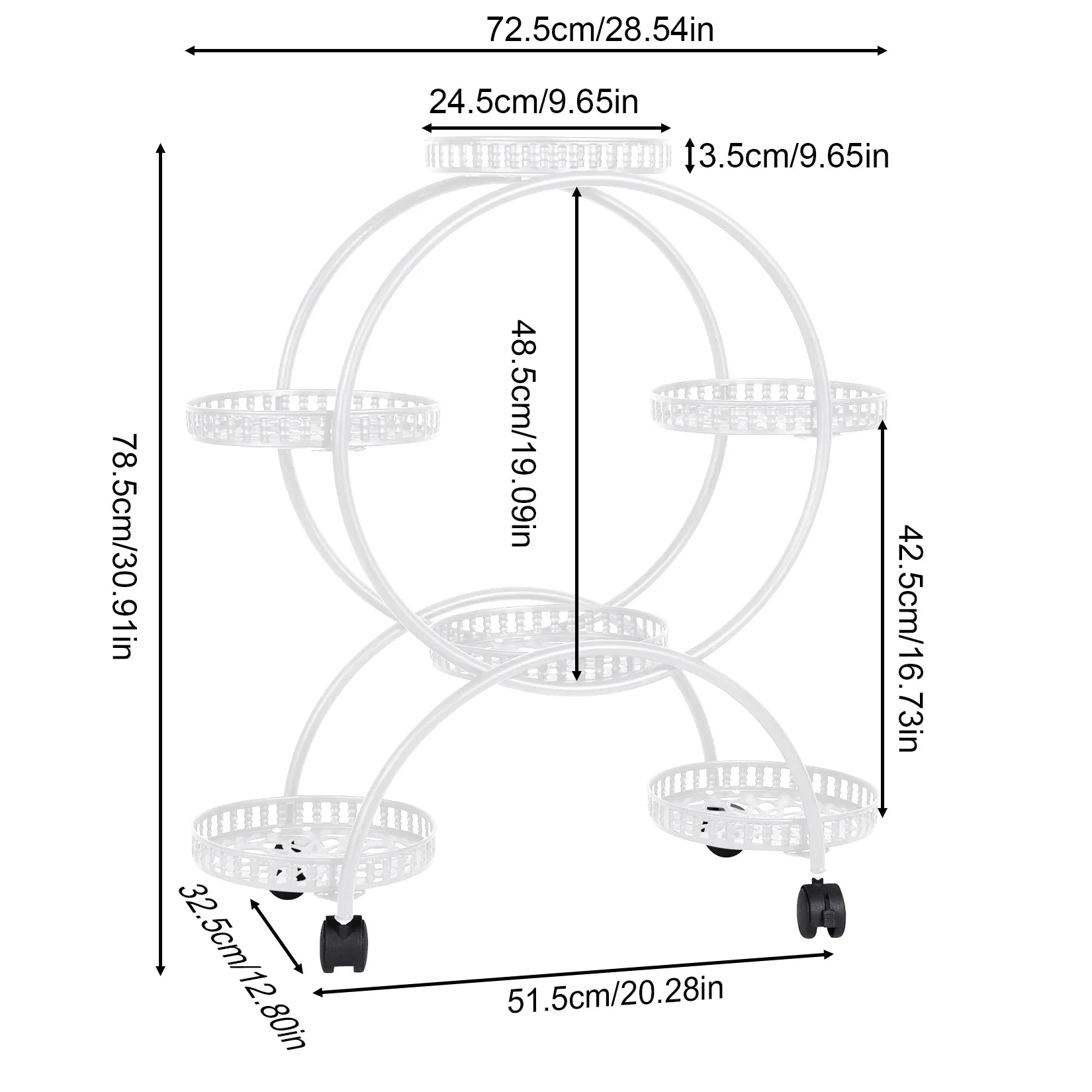 6 Potted Metal Plant Stand Garden Cart Flower Pots Rack Holder Display Shelf with Wheels for Patio Porch Balcony Decoration