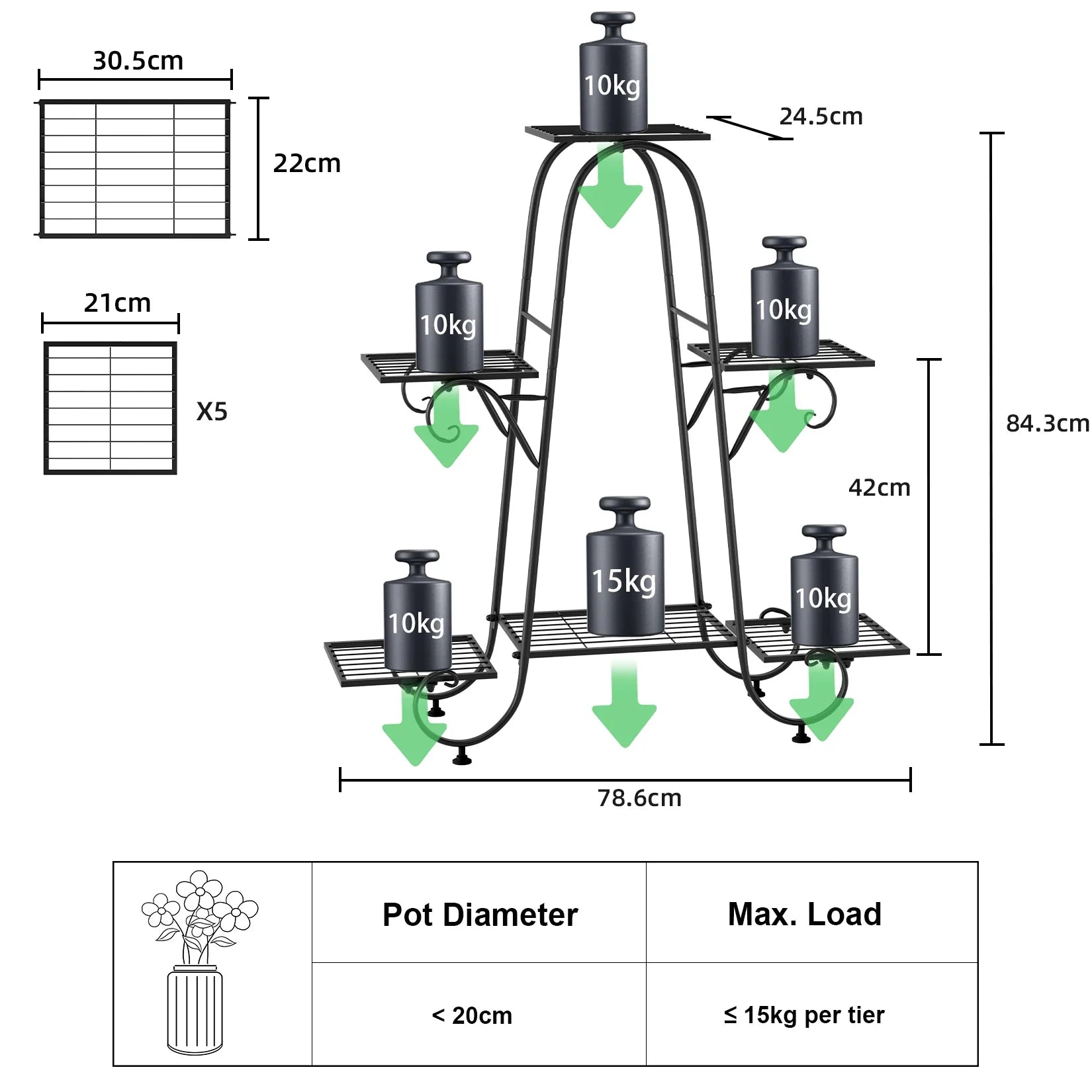 6 Tier Metal Plant Stand, Garden Patio Flower Rack, Step Design, Outdoor, Indoor, Wrought Iron