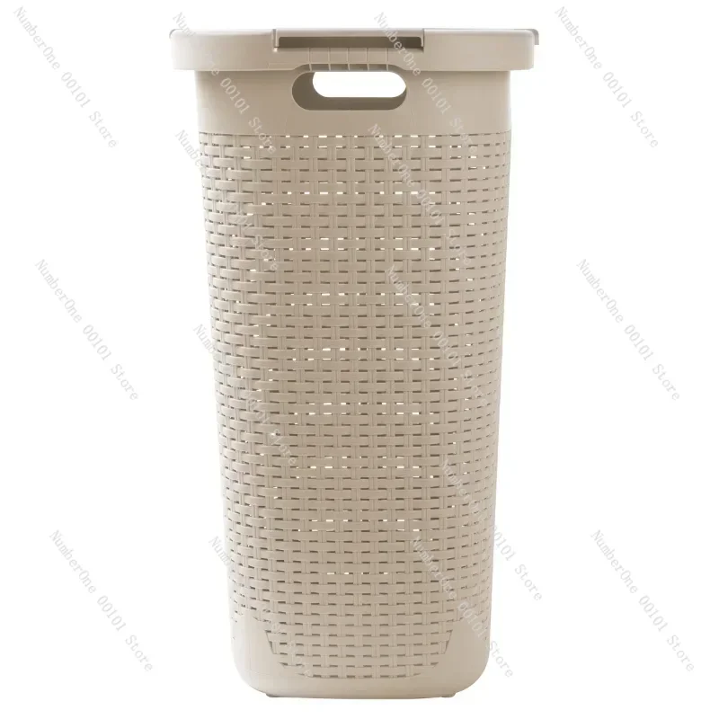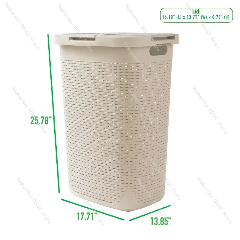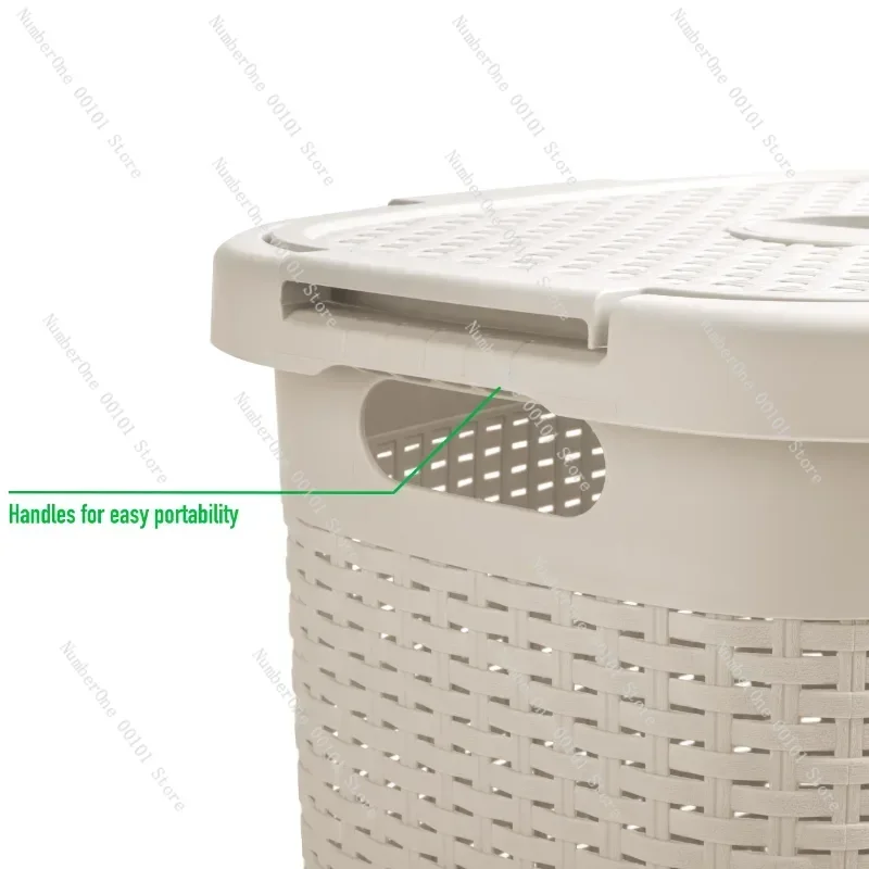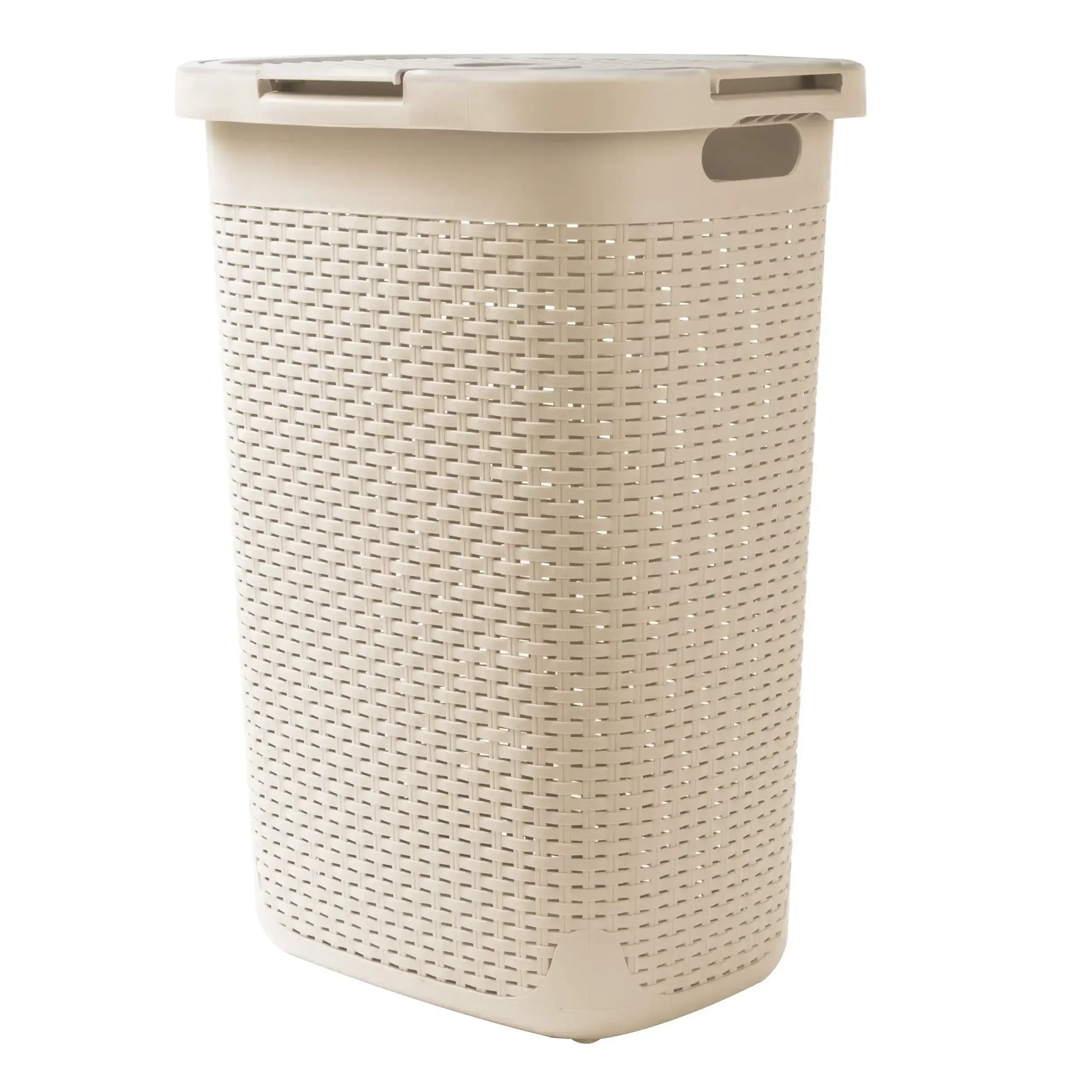 60 Liter Plastic Laundry Basket with Cutout Handles & Lid, Ivory