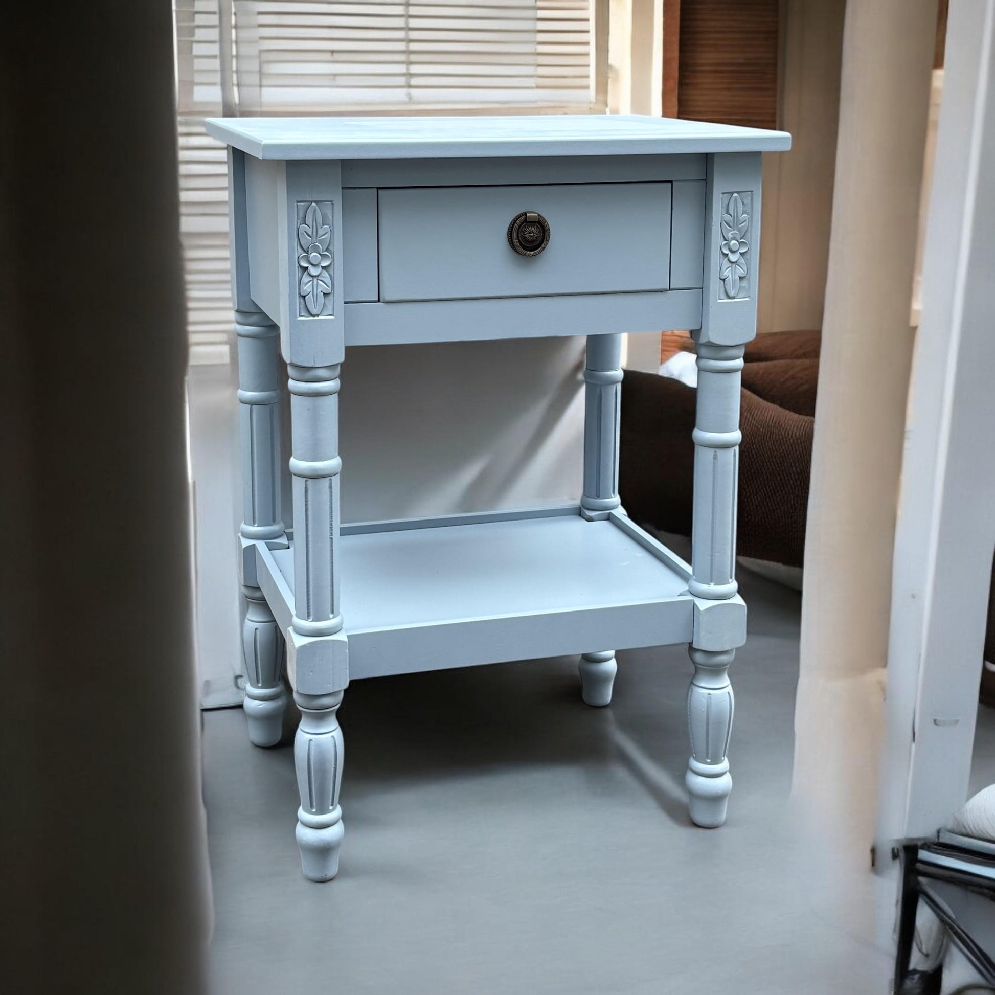This beautiful table stands perfectly next to your bed. The table features a drawer for storage, Hand FinishedCan also be used as a bedside table