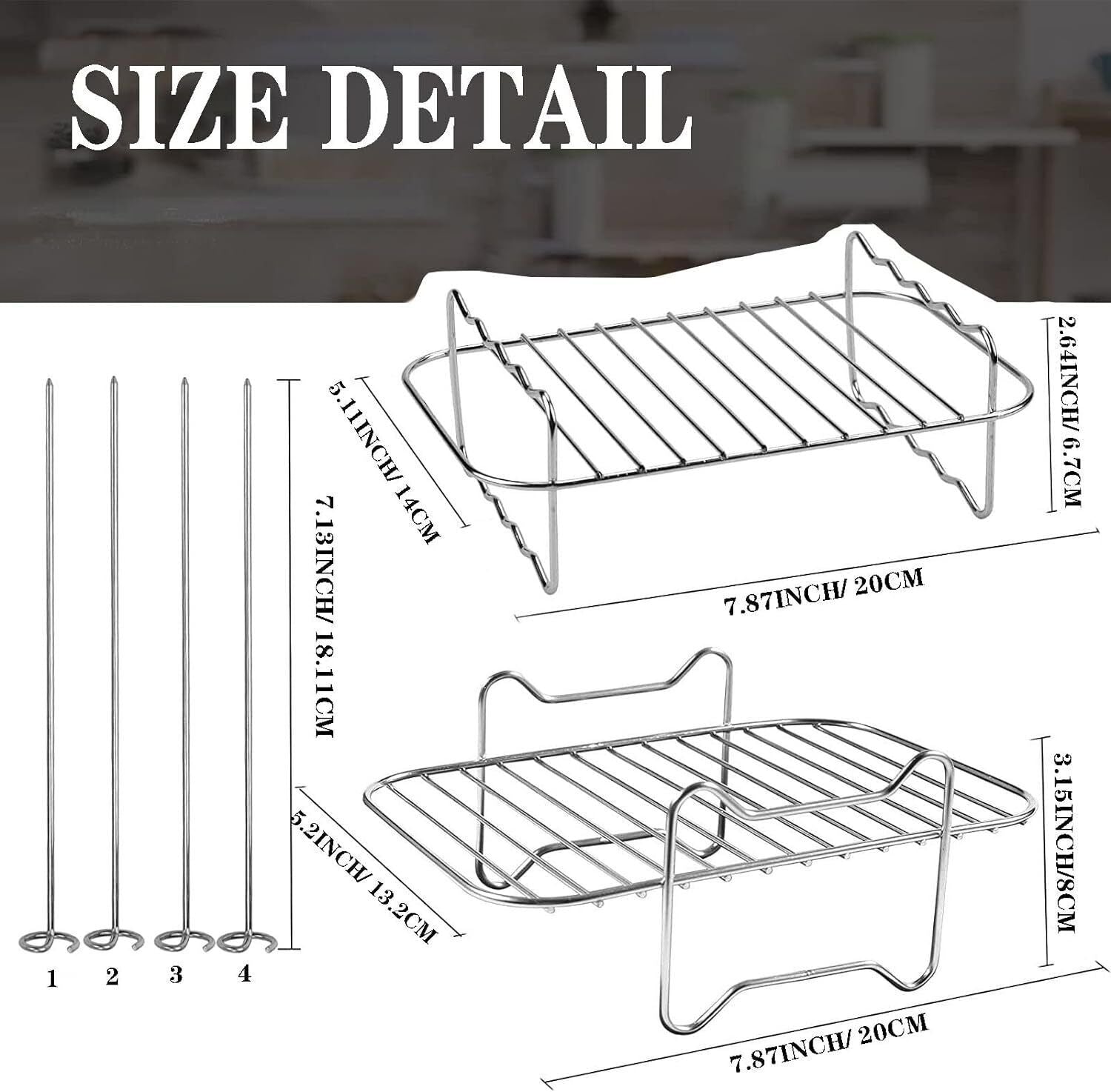 【Package Included】: You will receive a set of air fryer racks (air fryer accessories, including 2 racks, 4 Stainless skewers) to take your air fryer to the next level, giving you unlimited dining possibilities.