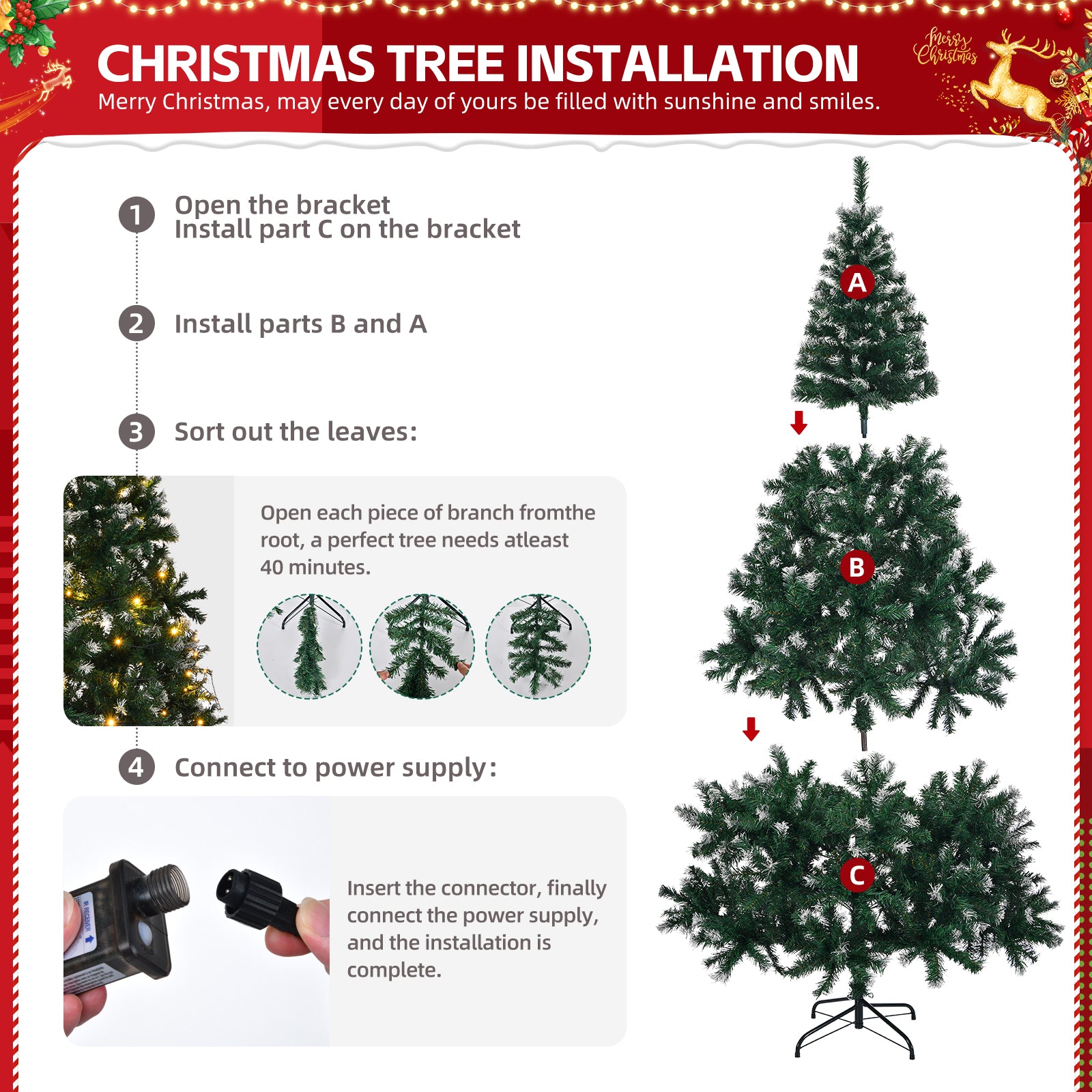 Create a magical holiday atmosphere in your home with our stunning Christmas trees. Designed to capture the beauty of the season, this tree brings warmth and joy to any space. With realistic branches and LED string lights, it offers a perfect canvas for your festive decorations. Whether you prefer a minimalist look or a lavish display, this tree sets the stage for your holiday celebrations, making it a timeless addition to your home for many seasons to come. Easy to set up and built to last, it's the ideal centerpiece for your holiday décor.