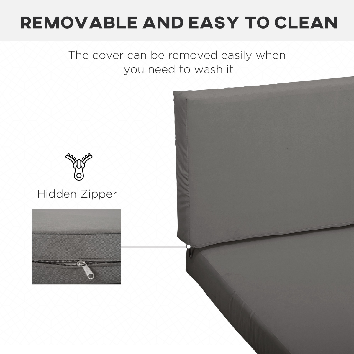 FABRIC COVERS: Polyester is smooth, mild weather resistant. Cover, with zip fastening, is removable and easy to clean.