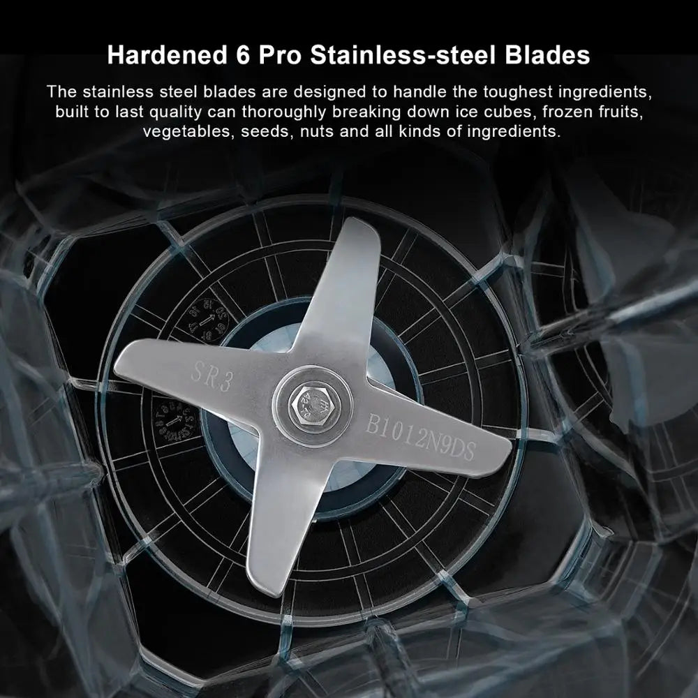 Heavy Duty Commercial Quality: The peak 2200W (rated 1500W) commercial-grade motor with hardened 6 stainless steel can easily break ice cubes and frozen fruits, it makes the large ice cube to small slush. Benefit from the WHOLE food by thoroughly pulverizing the ice cubes, frozen fruits, vegetables, seeds, nuts and much more.