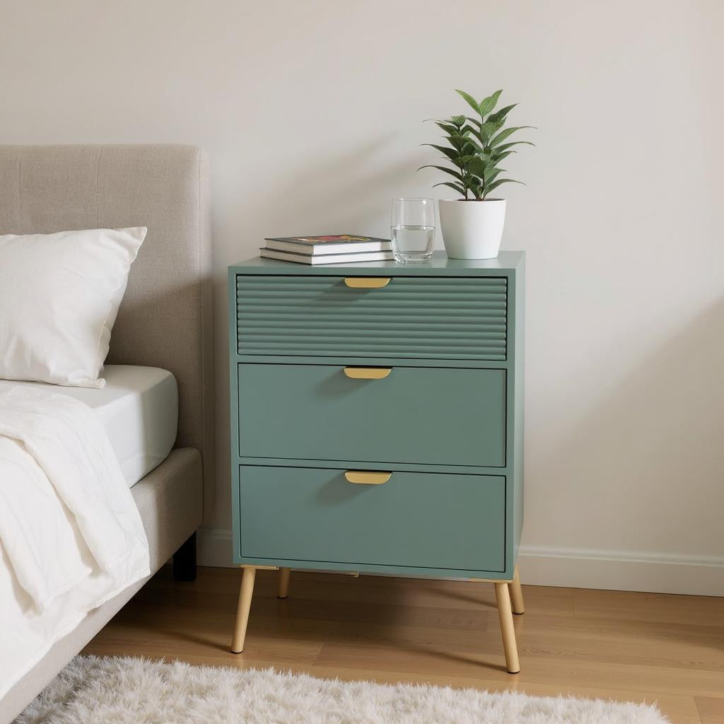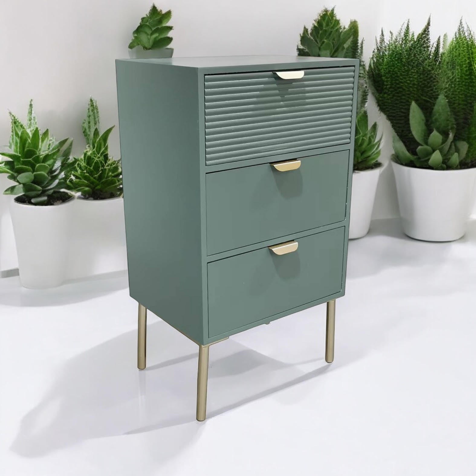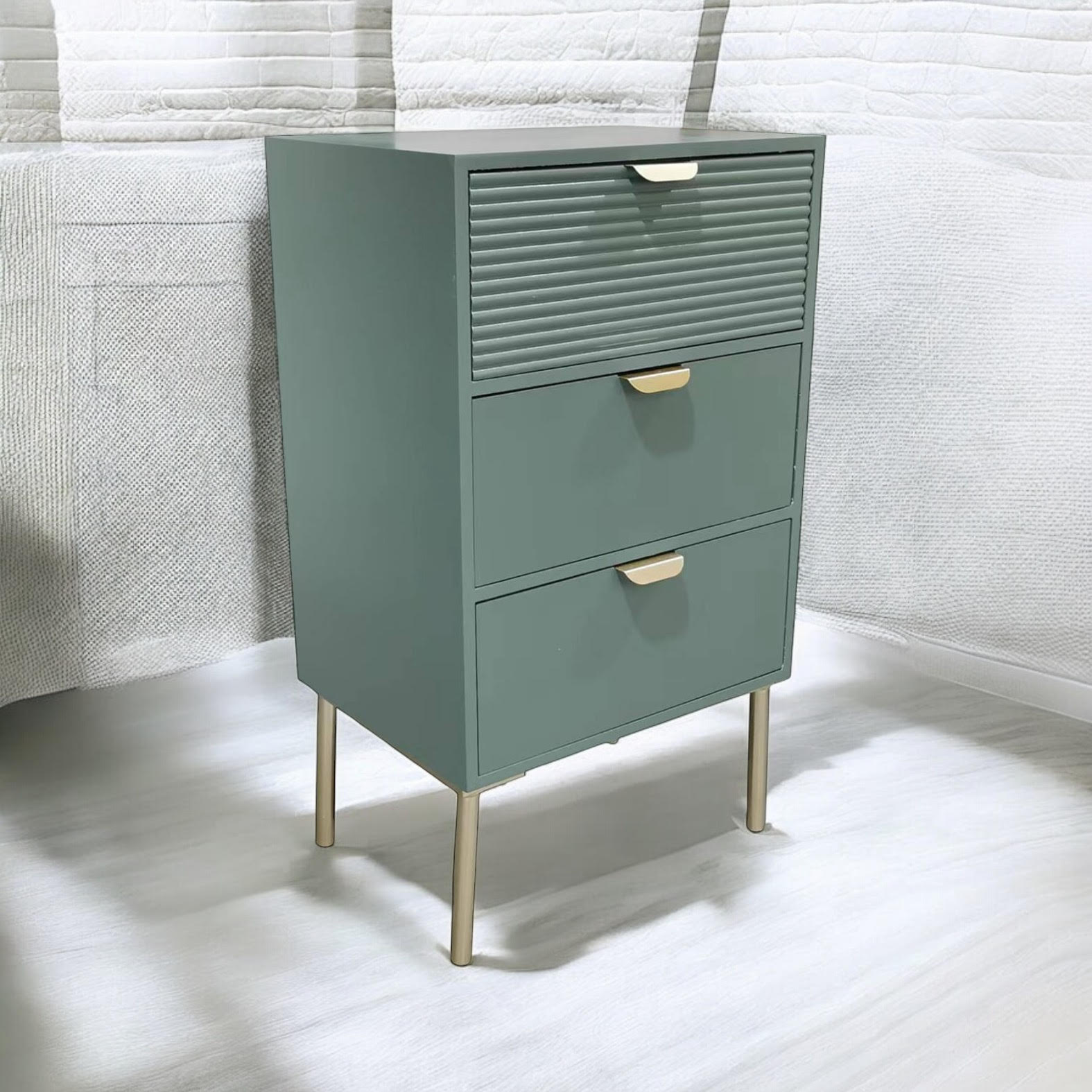 75CM GREEN WOODEN 3 DRAWER CHEST OF DRAWER