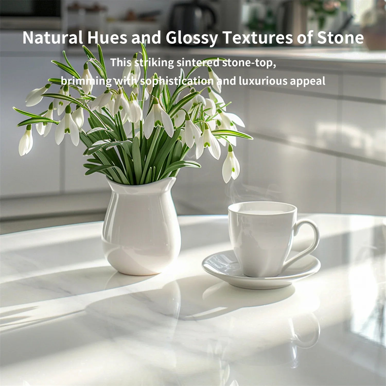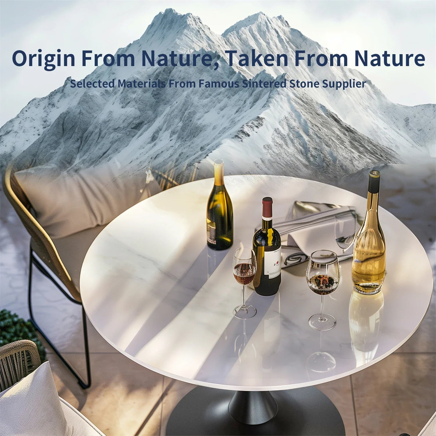 78cm Tall Leisure Round Kitchen Dining Table with Sintered Stone Top and Pedestal Base Bar Height Bistro Table