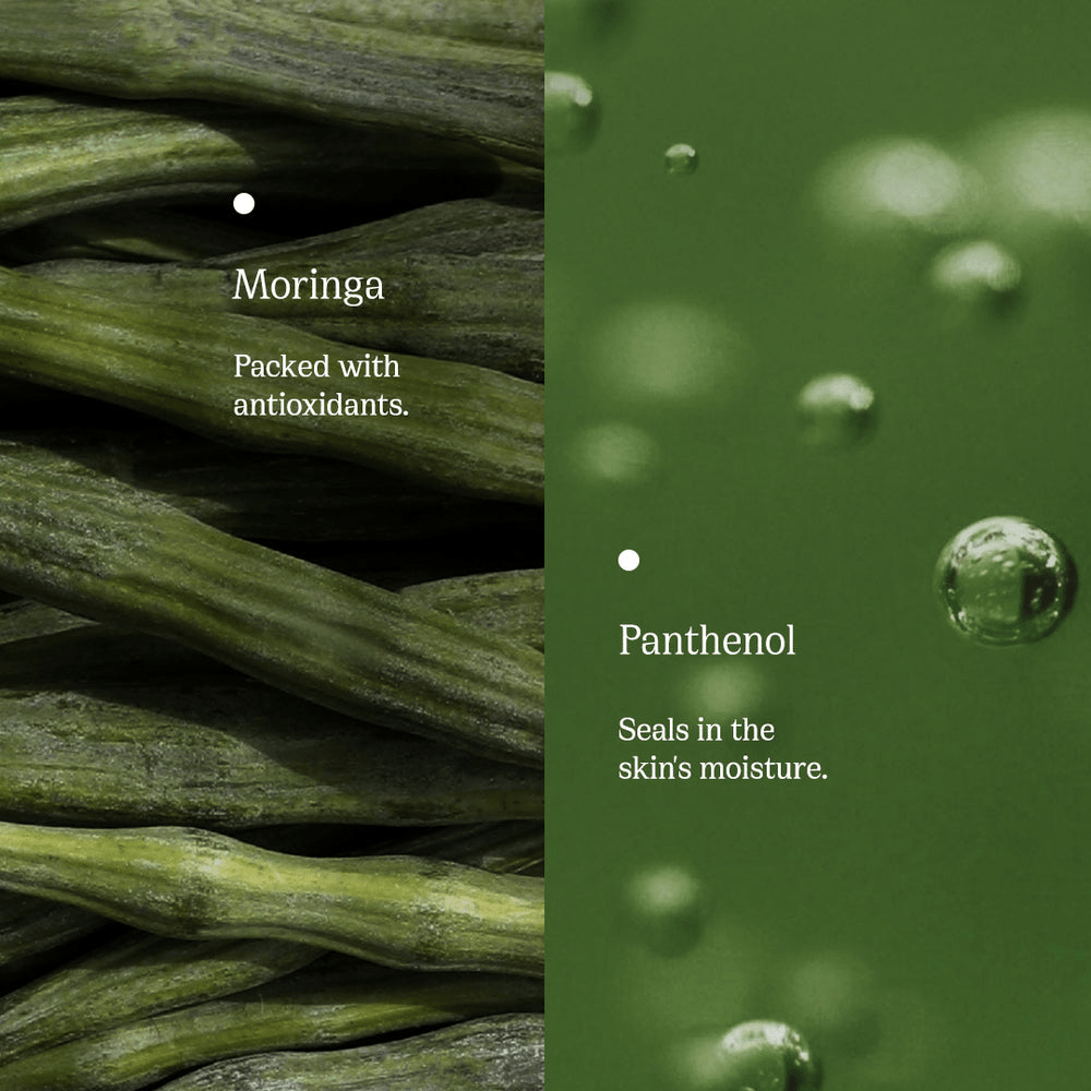 - A gentle, foaming cream body wash with moringa and panthenol that helps cleanse and hydrate the skin while also imparting a healthy glow.