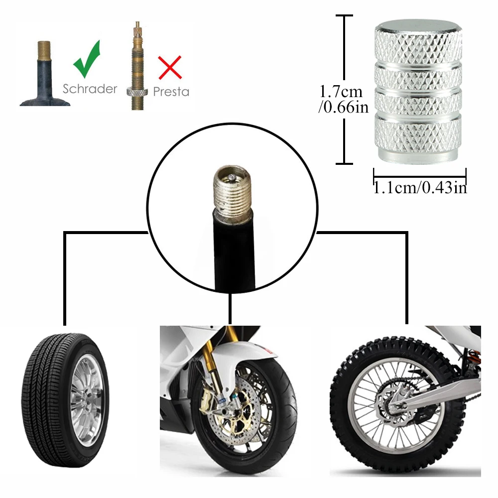 8Pc Tire Valve Caps Tyre Rim Stem Cover Dust Proof Auto Wheel Cap Aluminum Alloy Nipple Caps for Cars and Motorcycles Bikes