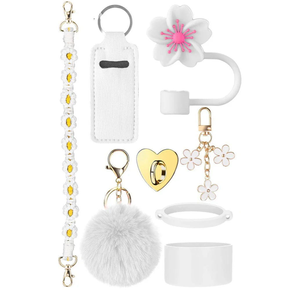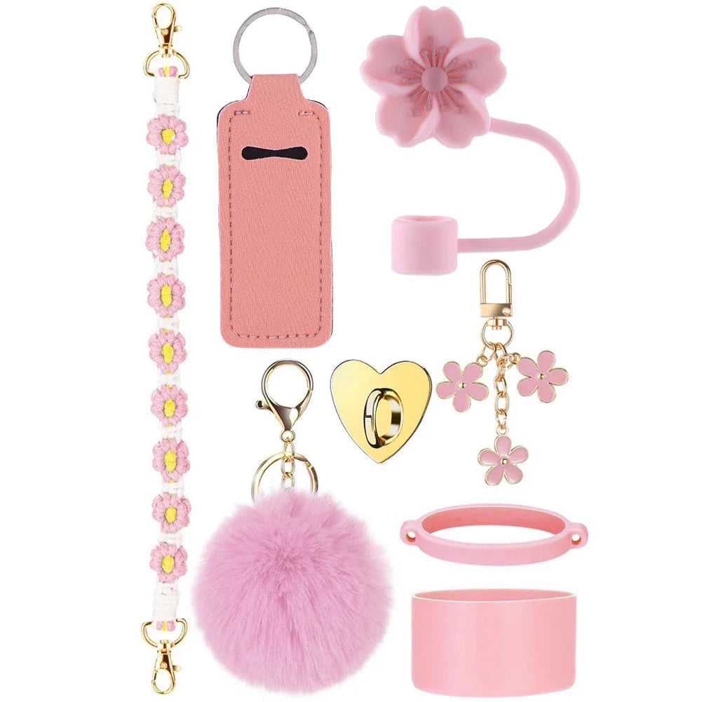 8Pcs/Set Silicone cup cover Straw Cover Handle Strap Keychain Lipstick Pouch for Stanley 40oz Tumbler Accessories Set