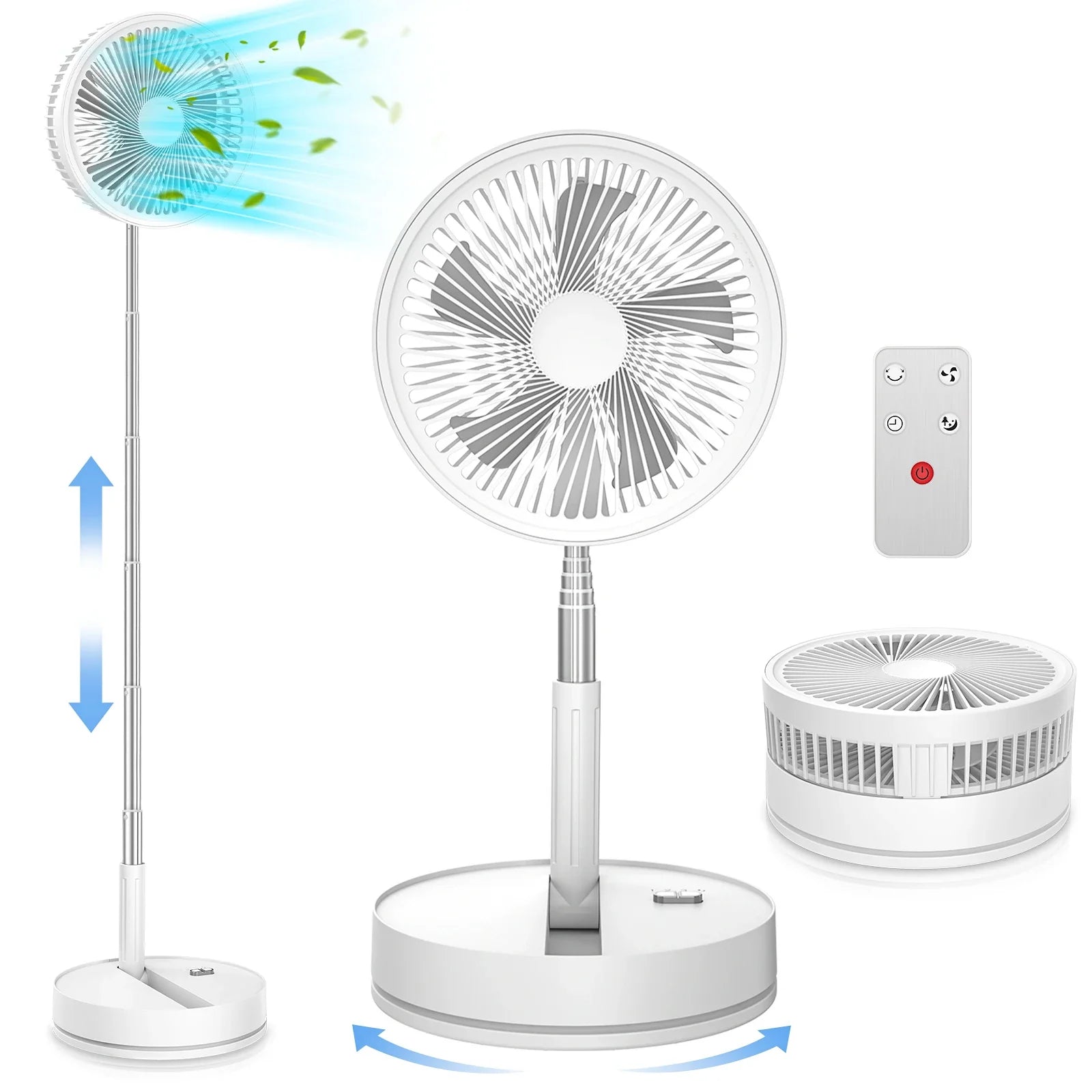 9" Mini Folding Portable Fan Air Cooler USB Rechargeable Wireless Floor Standing Fan Remote Control for Camping Desk Home