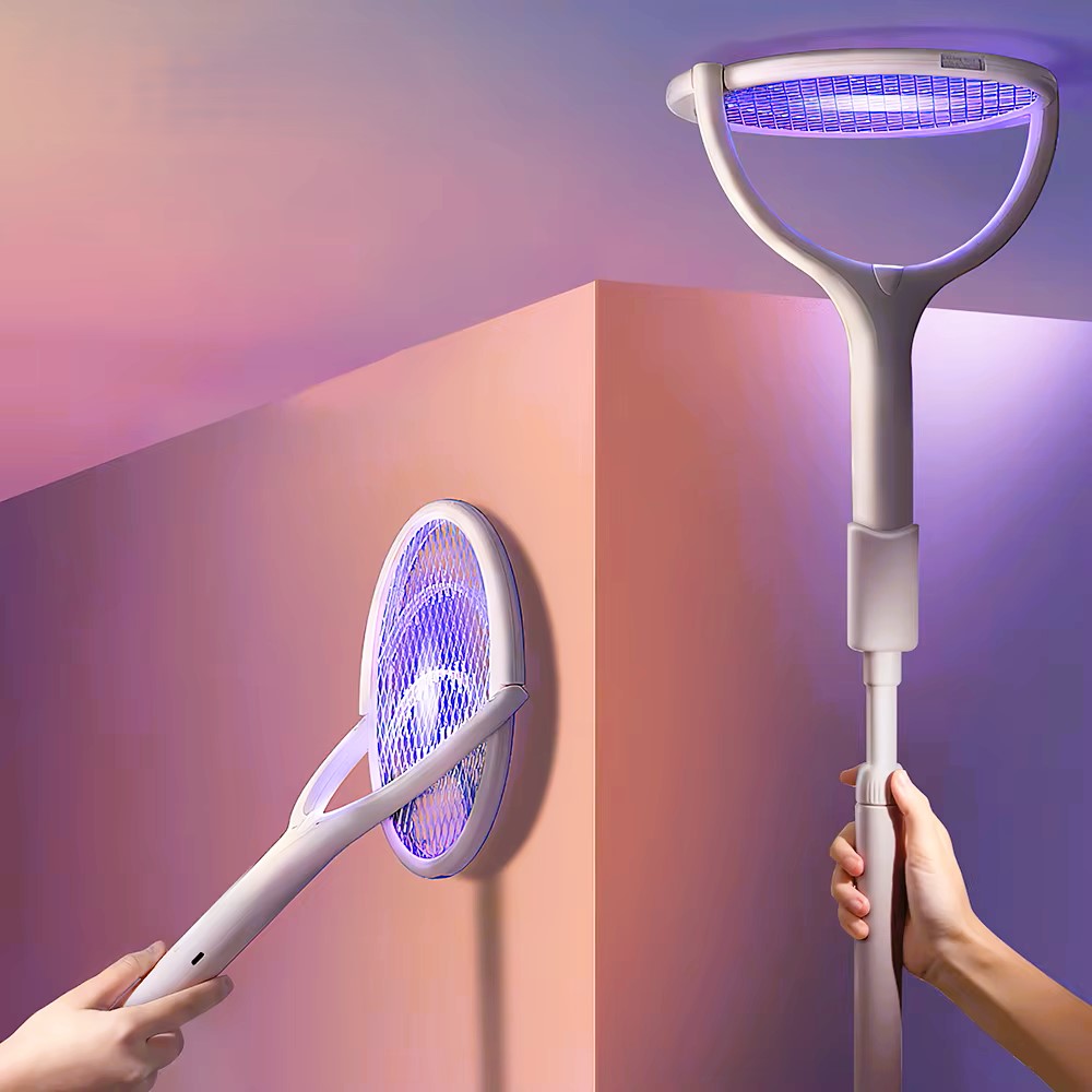 Eliminate pesky insects with the 90 Degree Rotatable Mosquito Killer Lamp. This electric shocker uses UV light to attract and zap mosquitoes and flies, ensuring a bug-free environment. Its 90-degree rotatable design and extendable rod provide flexible positioning for optimal coverage. Perfect for summer, this bug zapper trap is an effective and convenient solution for both indoor and outdoor use. Enjoy a peaceful, insect-free space with this powerful fly swatter.