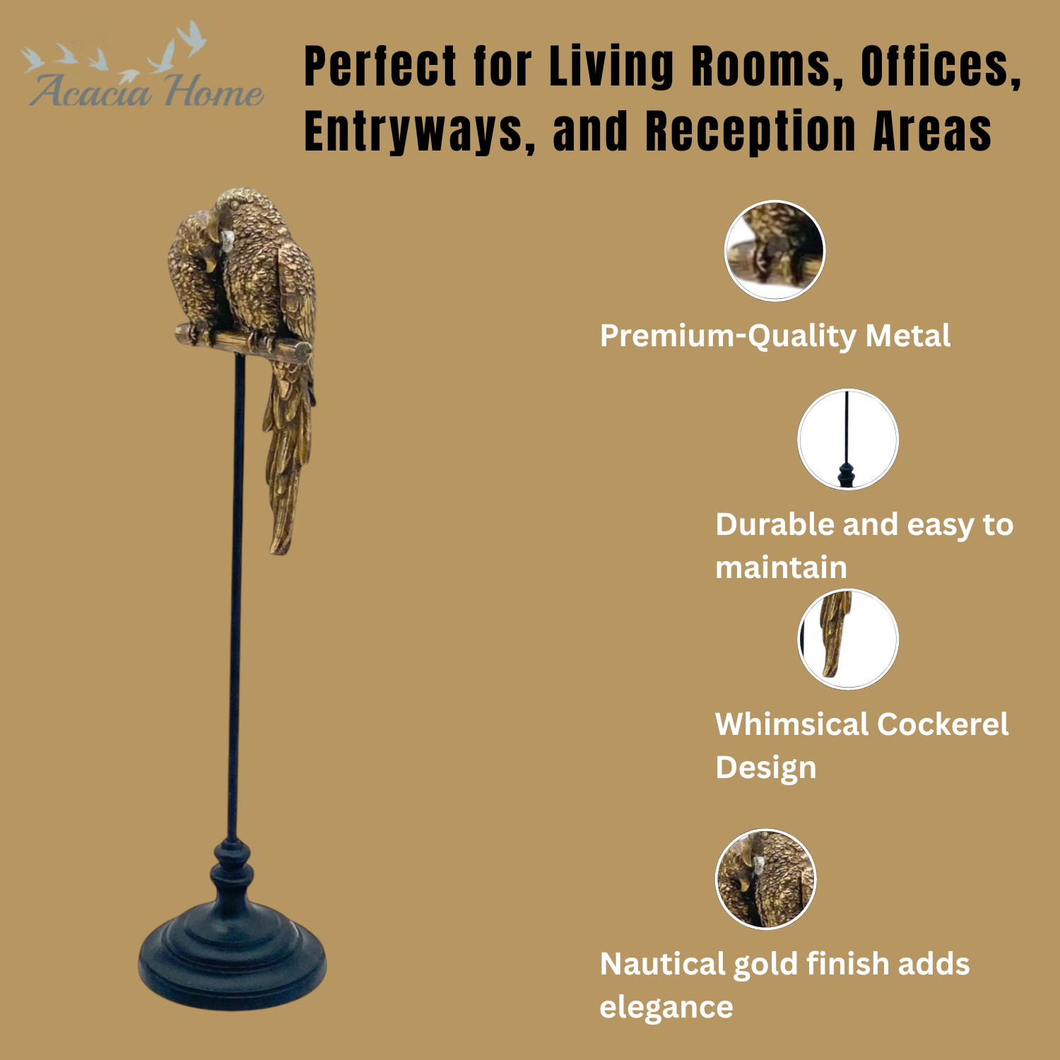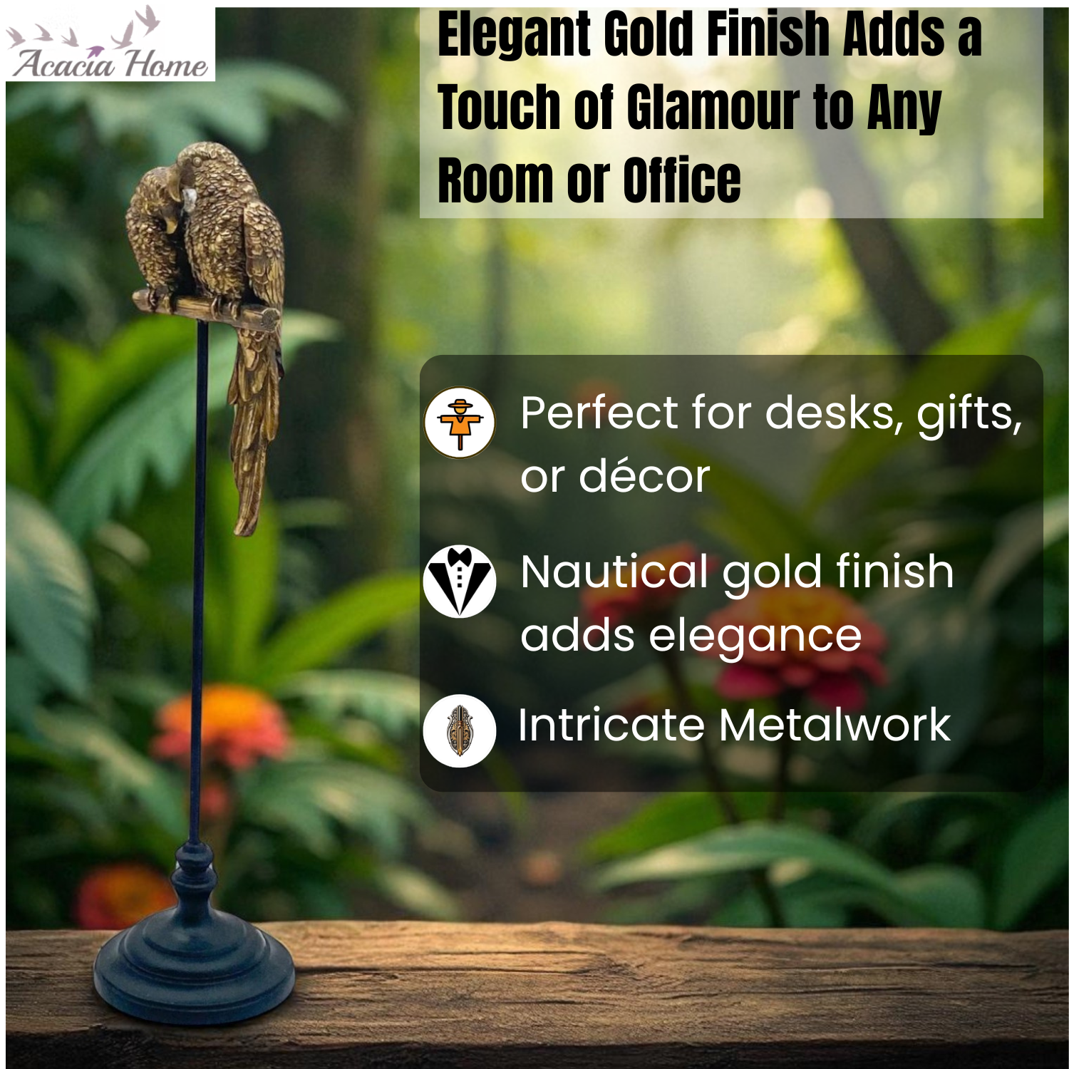 It never flies away. This figurine is large, exotic, and decorative, with a realistic representation of a parrot., Hand FinshedRecycled content