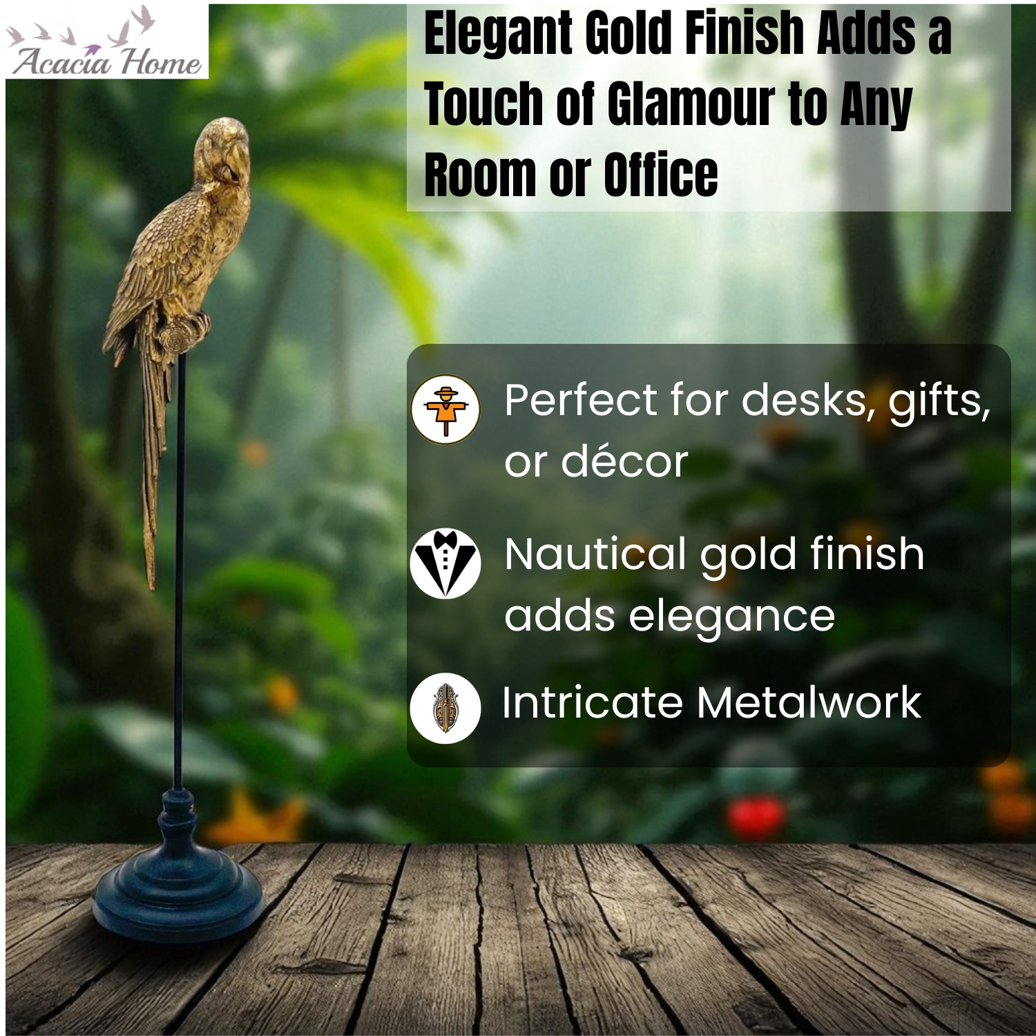 It never flies away. This figurine is large, exotic, and decorative, with a realistic representation of a parrot., Hand FinshedRecycled content
