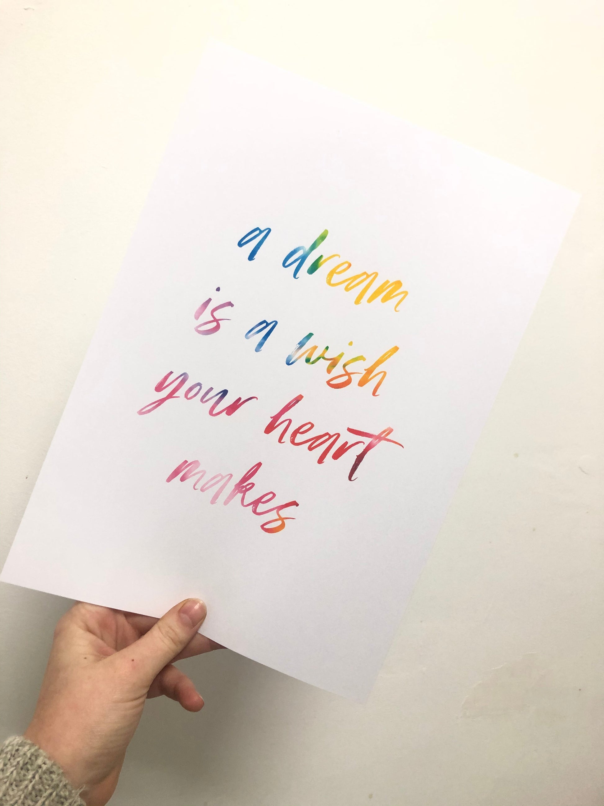 A Dream Is A Wish Colour Children's Room Wall Decor Print