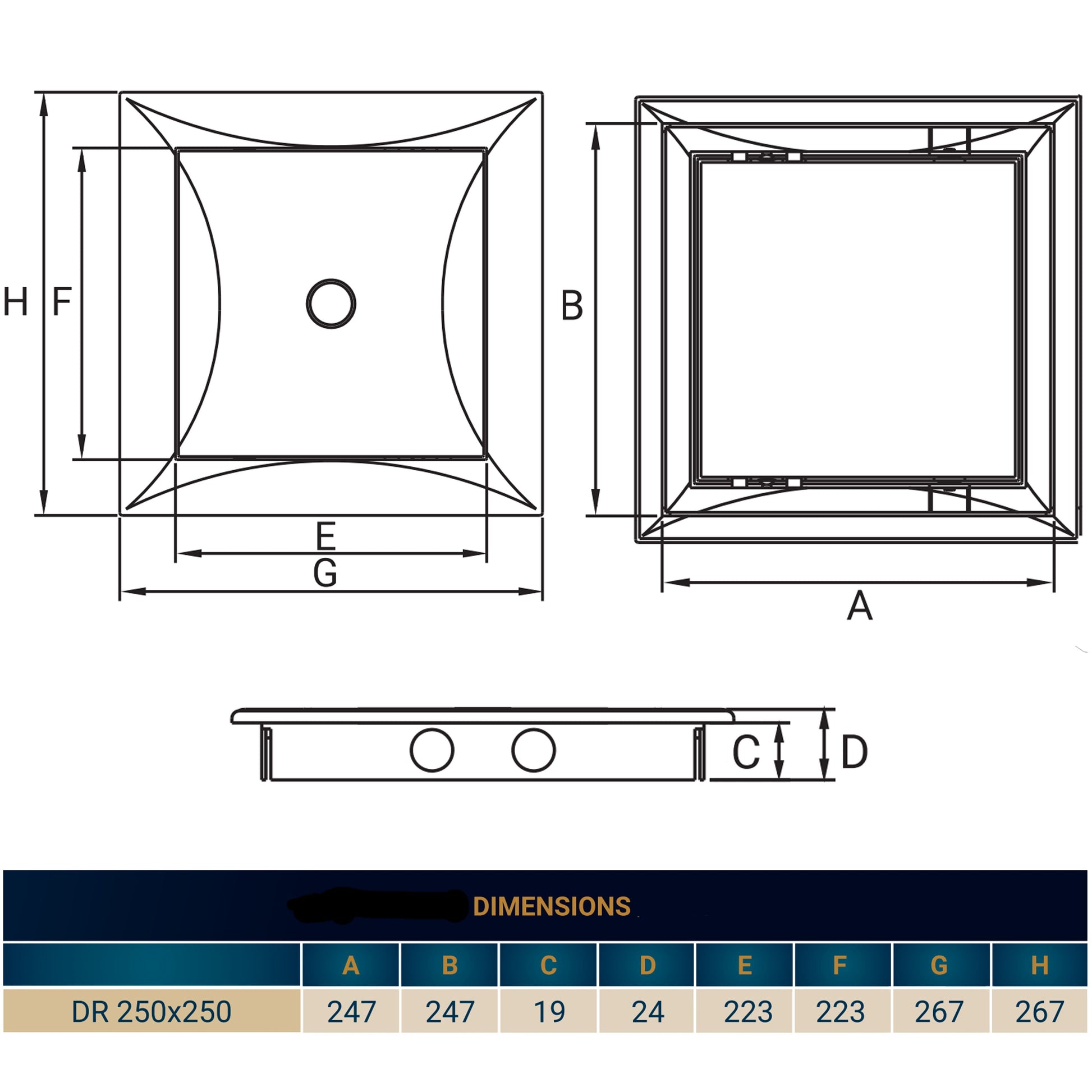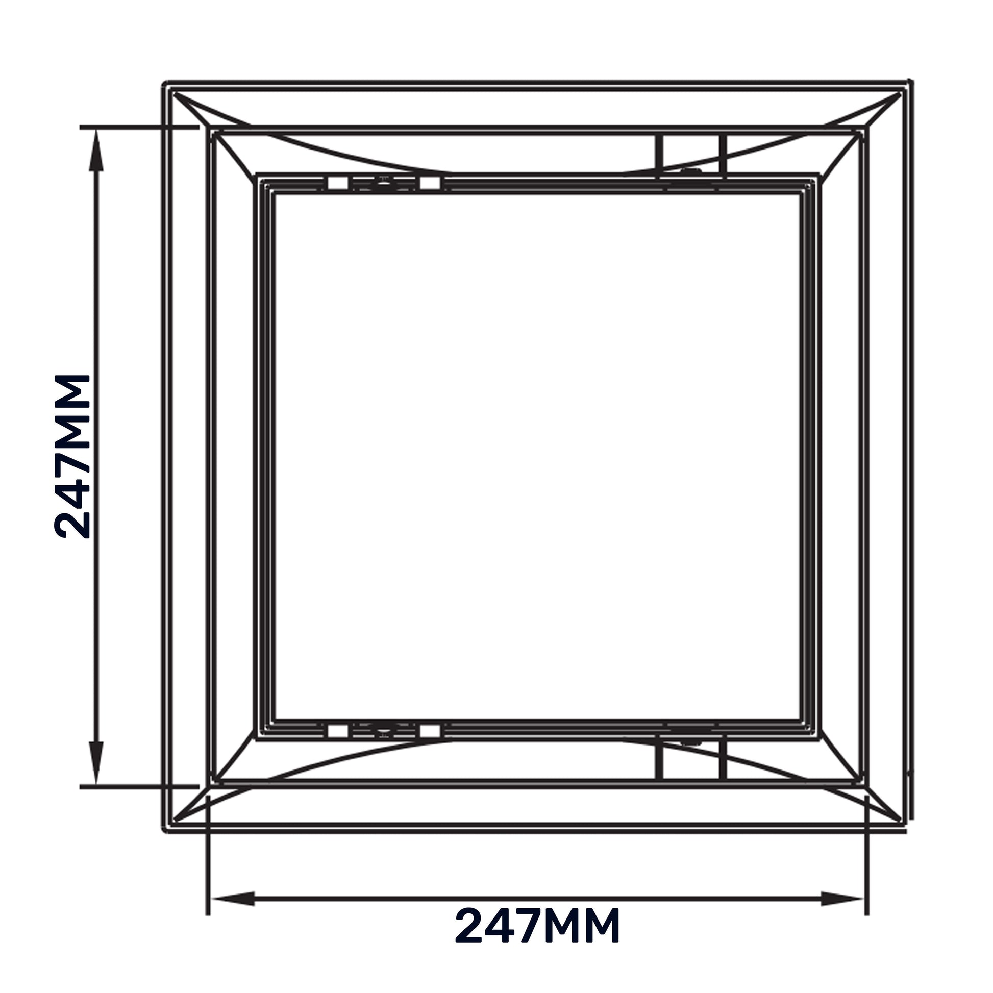 This access panel measures 250mm x 250mm. Other sizes are available on separate listings on our website. If you require an access panel with a lock these are also available on our website.