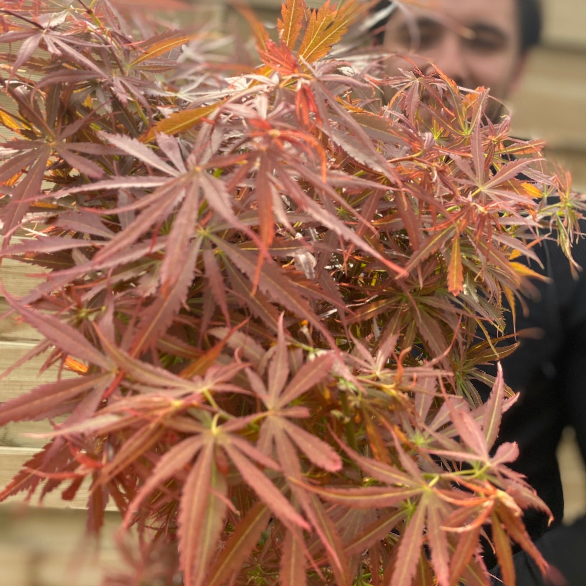 Acer palmatum Jerre Schwartz is a deciduous shrub that has beautiful green foliage that turns to bronze during the summer and eventually red in the fall before they fall. This is a great addition to any garden and will bring colour and life to the area.