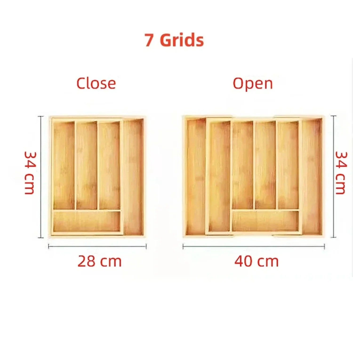Adjustable 6/7 Grids Bamboo Drawers Insert Box for Cutlery Dinnerware Tools - Kitchen Cabinet Organizer and Housholder Gold tray