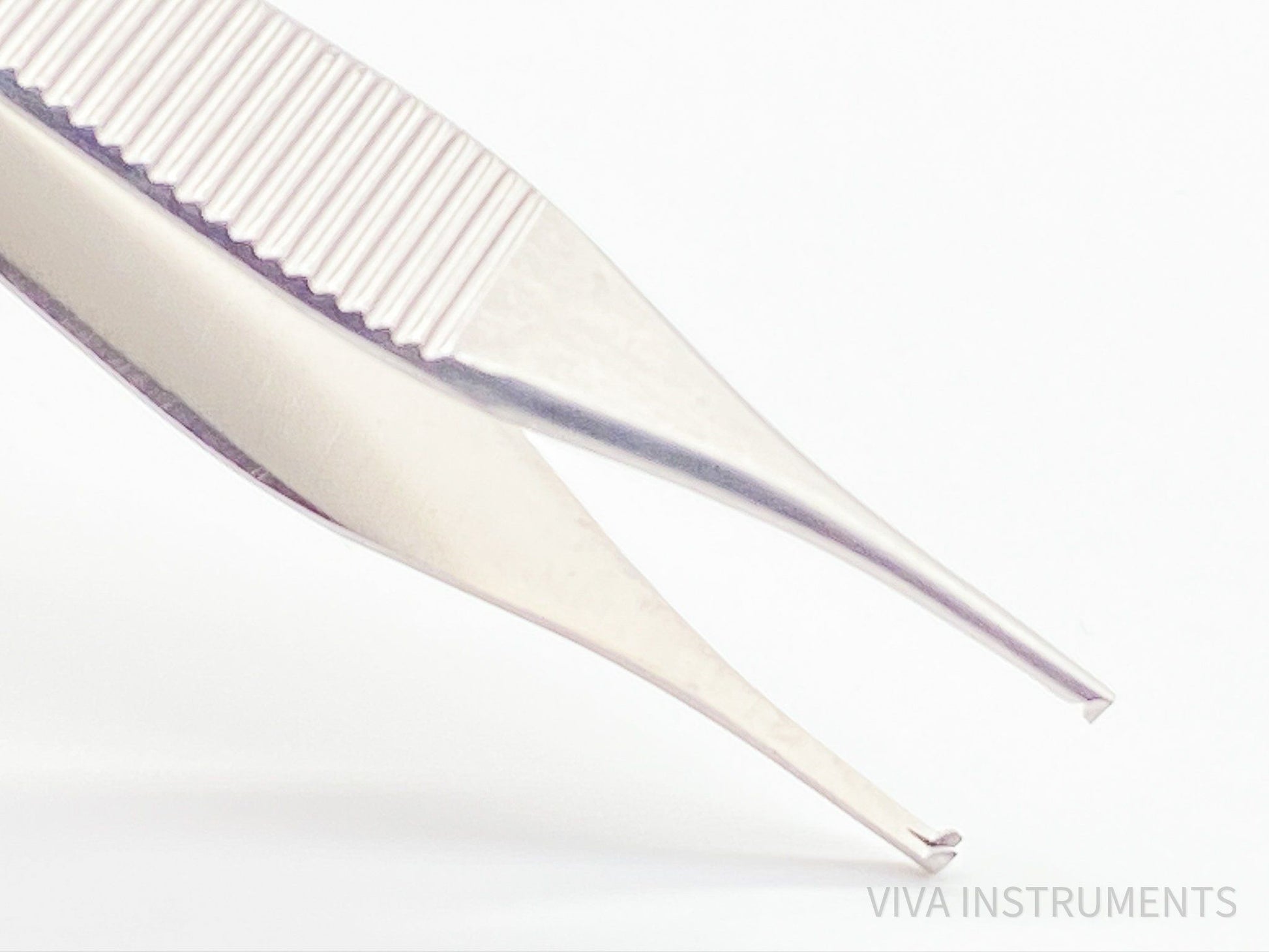 Adson Forceps Toothed - Forceps 1x2 teeth tip used for handling dense tissue, such as in skin closures. Also called locking forceps, these are ratcheted instruments used to hold tissue or objects, or provide hemostasis. Can be traumatic or atraumatic. They are made of surgical grade stainless steel.