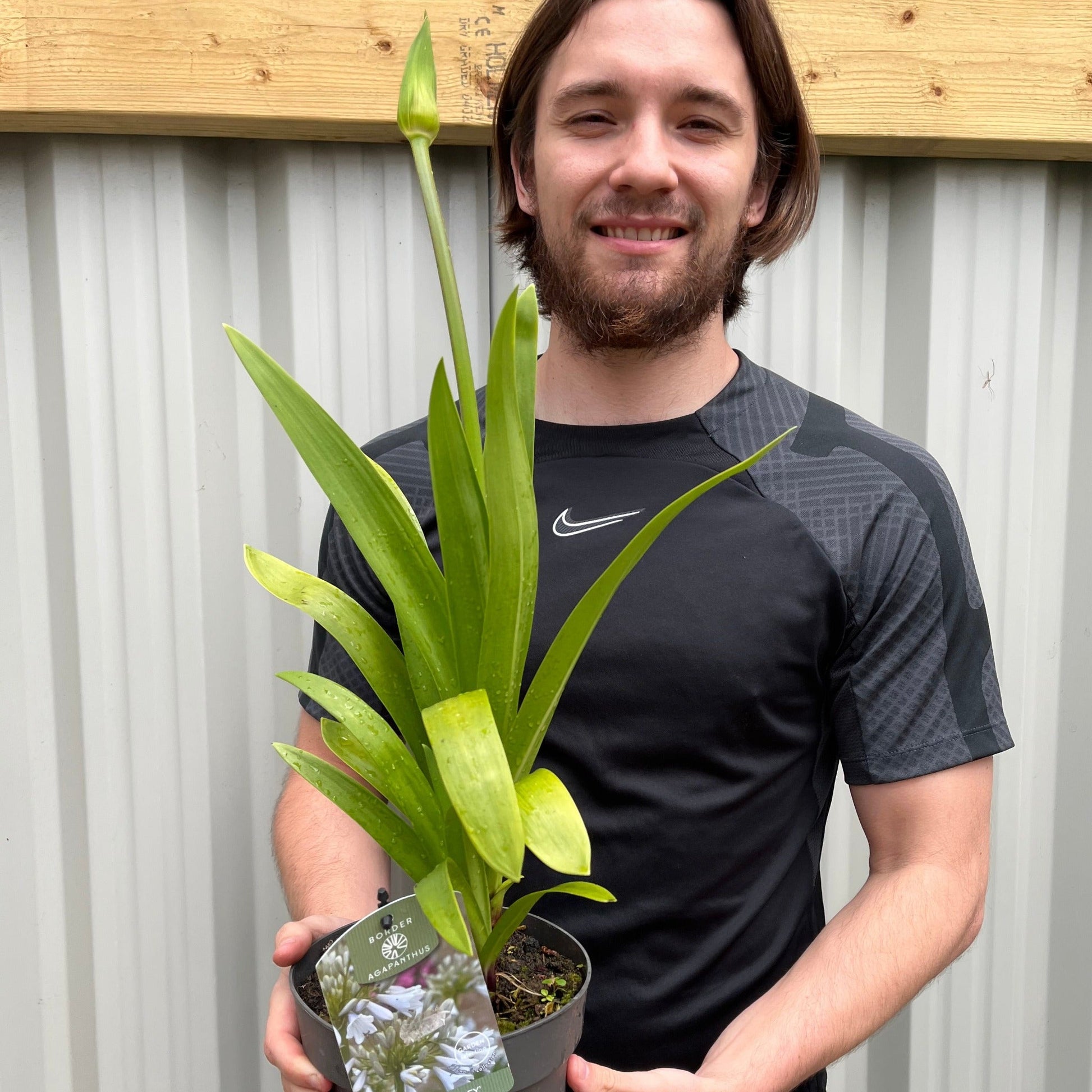 Agapanthus Windsor Grey is an elegant perennial known for its delicate, pale silvery-grey flowers with subtle hints of lavender. These soft-hued blooms are held on tall, graceful stems above clumps of lush green foliage, making it a refined choice for borders, containers, or mixed planting schemes. Thriving in sunny, well-drained conditions, this variety brings a touch of understated sophistication to the summer garden.