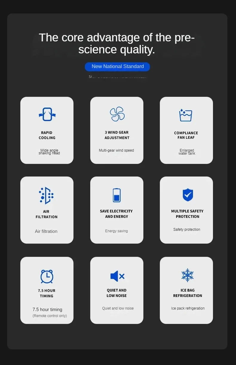 Air supply type: Natural wind, sleeping-mode wind, standard wind, ultra-strong wind