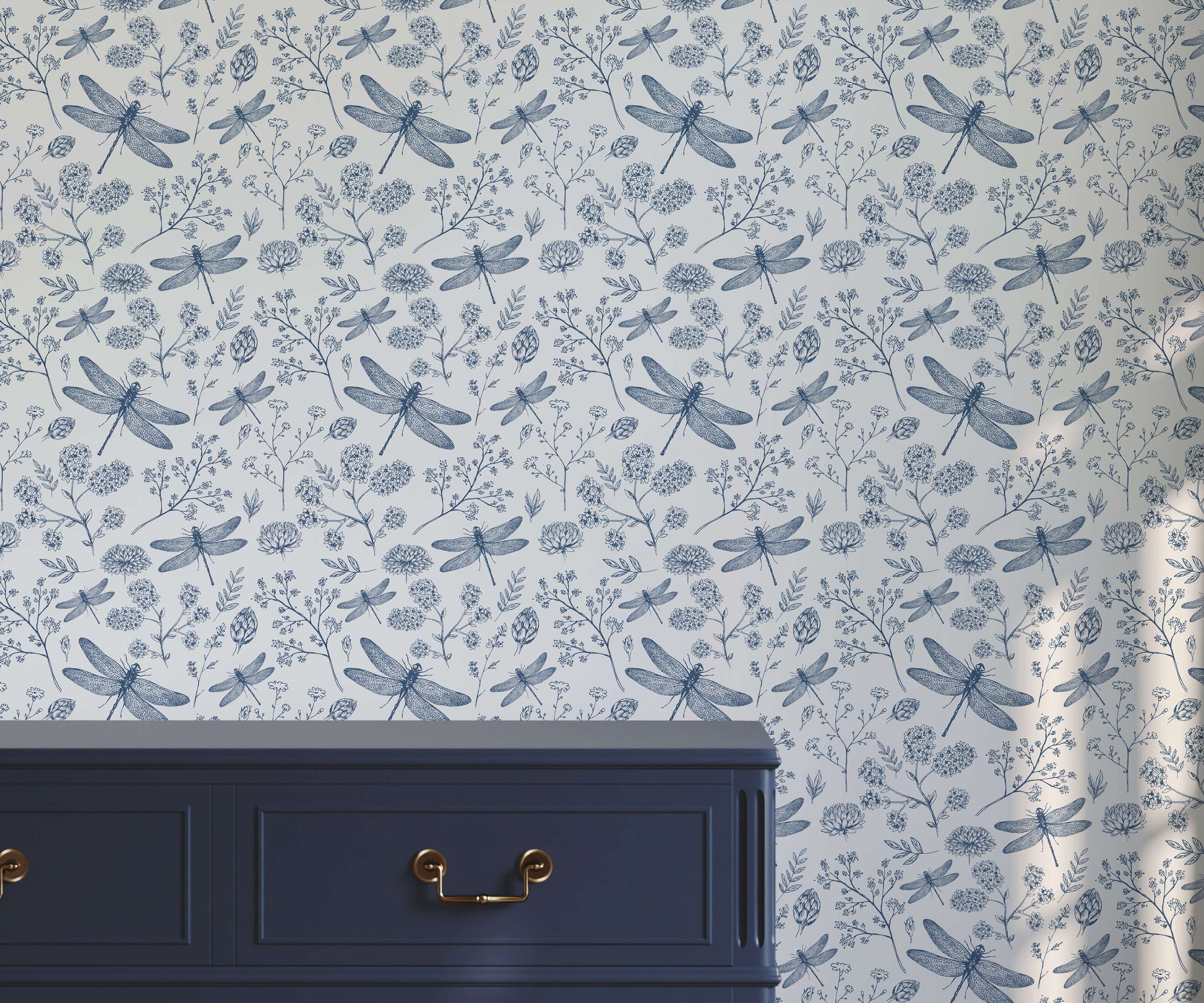 Add a sense of charm to your interior with this monochrome dragonfly wallpaper. Set amongst a variety of wildflowers, the dragonflies are intricately illustrated with lots of detail. The monochrome palette helps keep the design understated. It works especially well in country-style schemes that have a twee aesthetic.