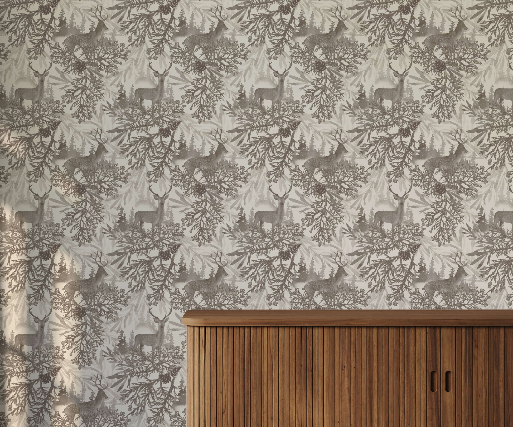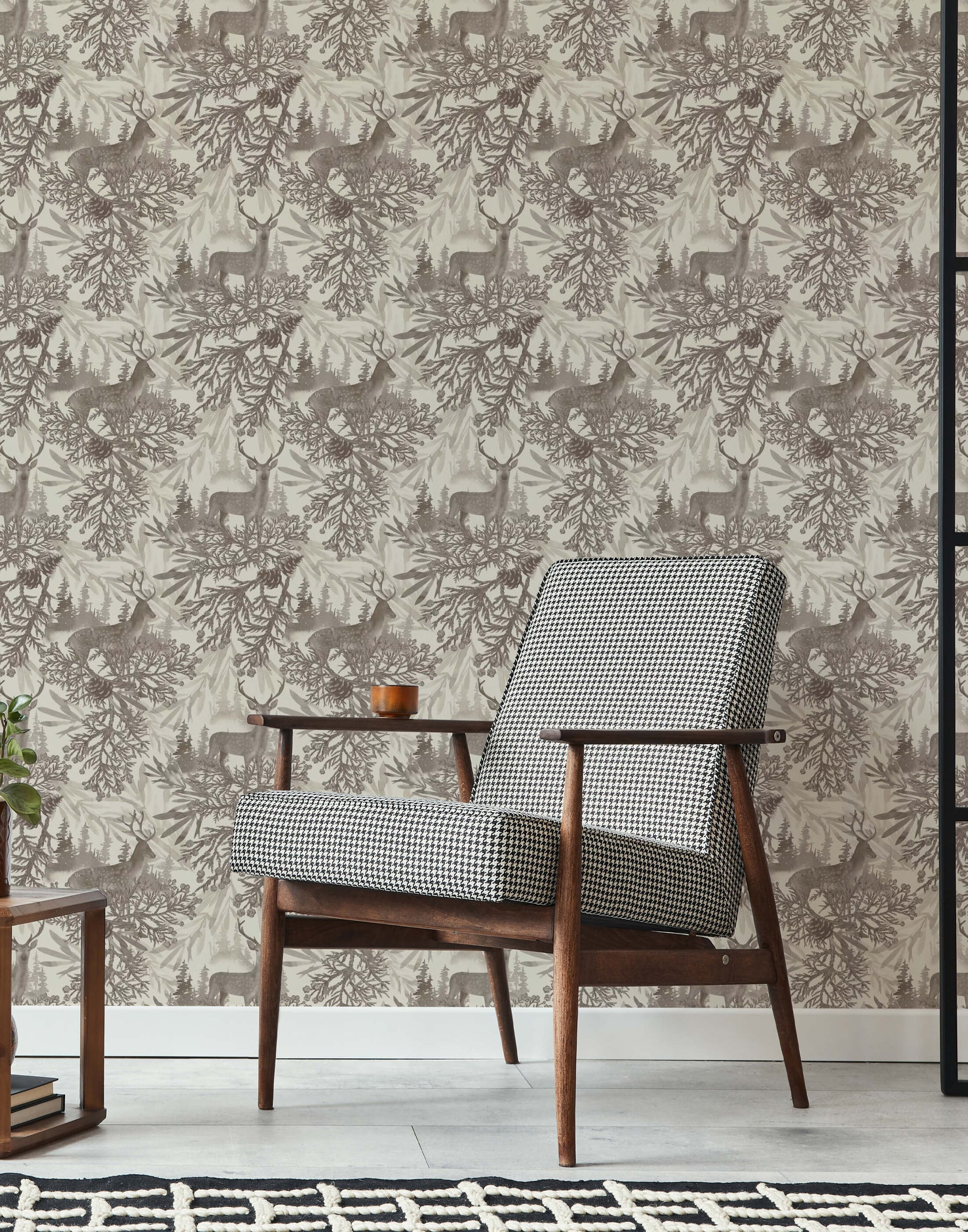 Bring a sense of rustic charm into you space with our stag wallpaper. The design, which comes in soft brown tones features watercolour stags amongst branches and leaves.