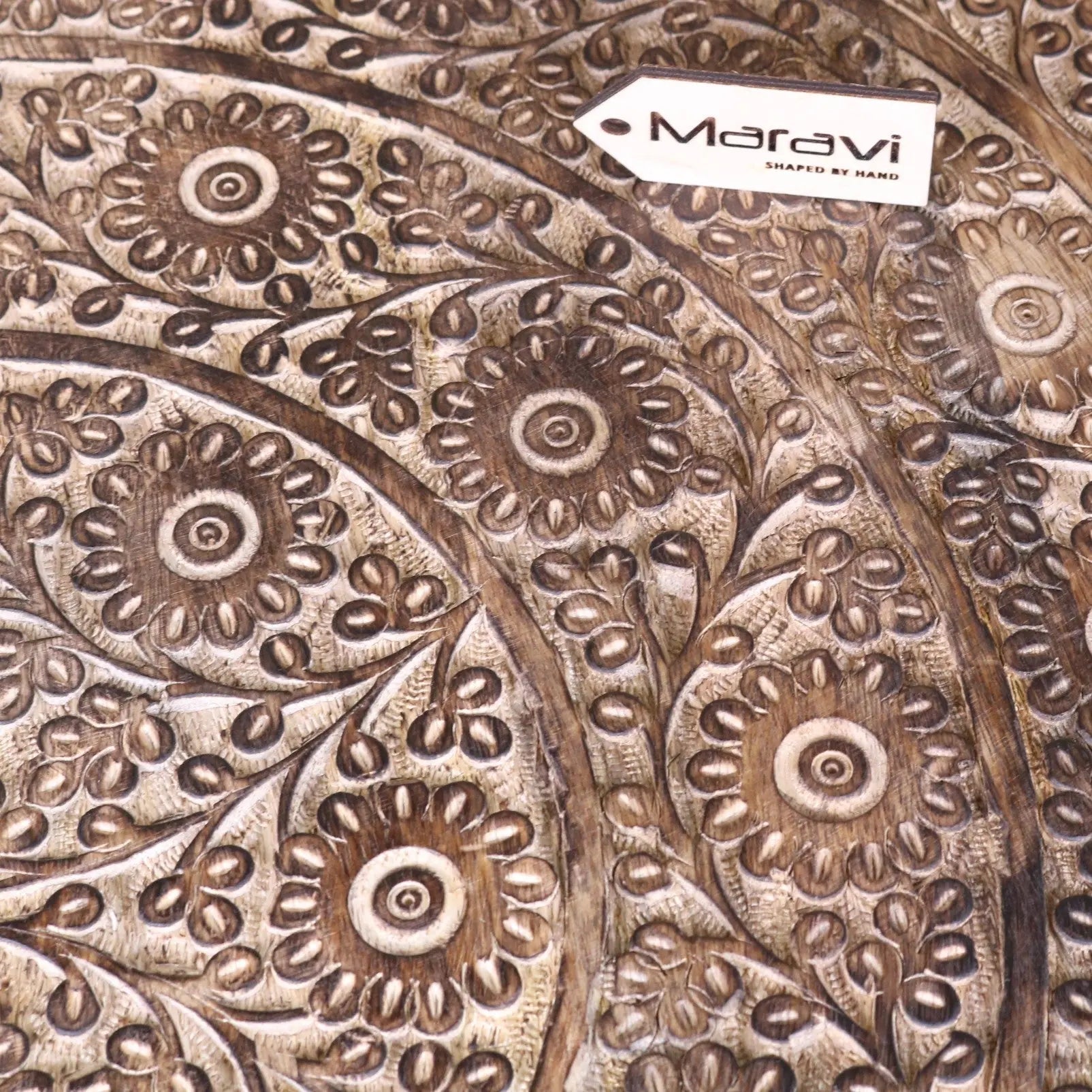 Intricate Hand-Carved Design: The tabletop is embellished with an ornate floral pattern, demonstrating traditional woodcarving skills and adding a touch of elegance to your space.