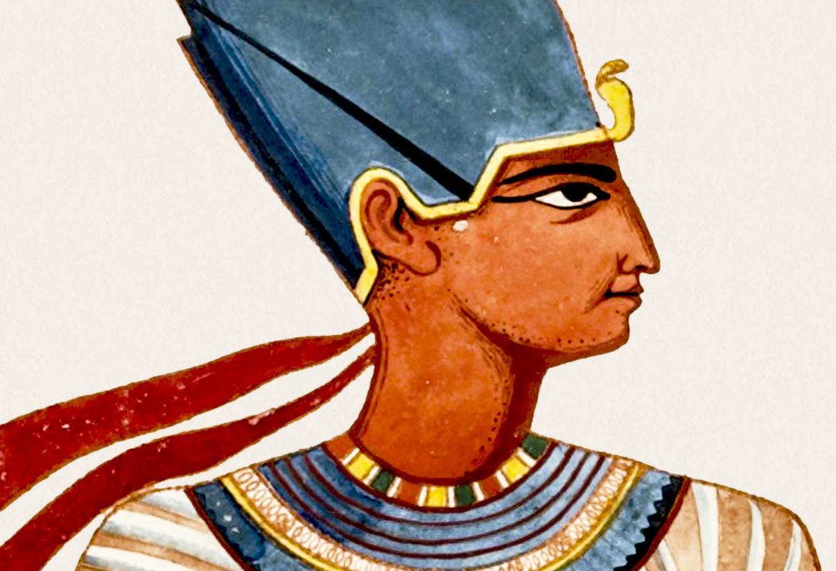 This is a vintage illustration from a book of genuine ancient Egyptian wall drawings of Great Speos: vestibule, south wall, lower row, painting of southwest corner from Monuments de l'Égypte et de la Nubie (1835–1845) by Jean François Champollion (1790–1832).