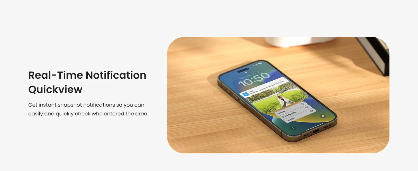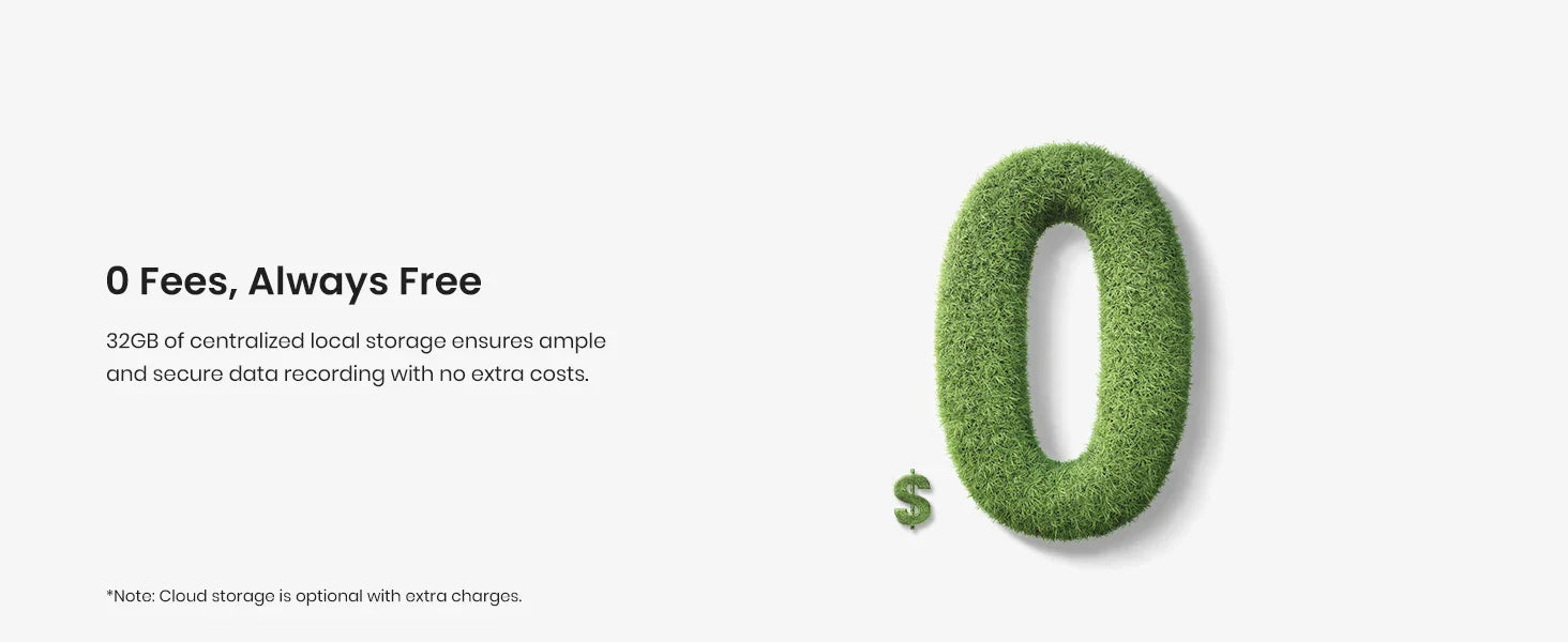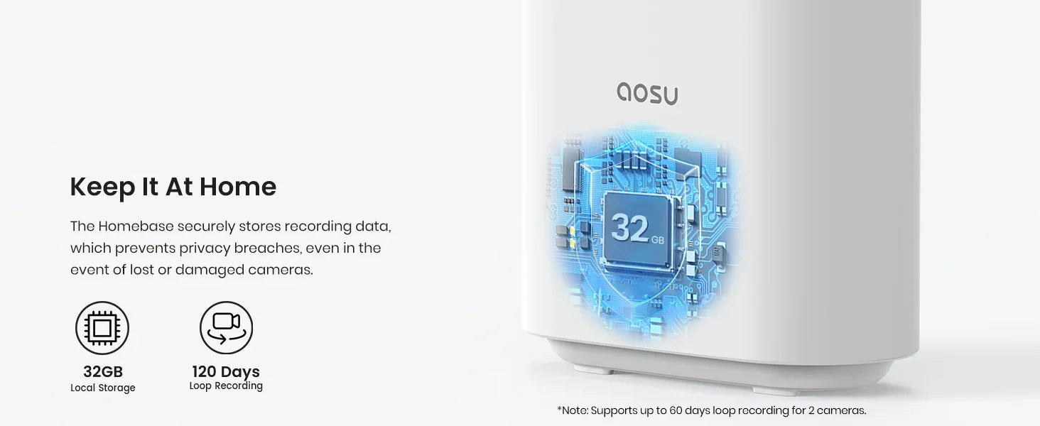 All recordings will be encrypted and stored in home base without subscription or hidden cost. 32GB of local storage provides up to 2 months of video loop recording. Even if the cameras are damaged or lost, the data remains safe. Homebase also provides instant notifications and stable live streaming.