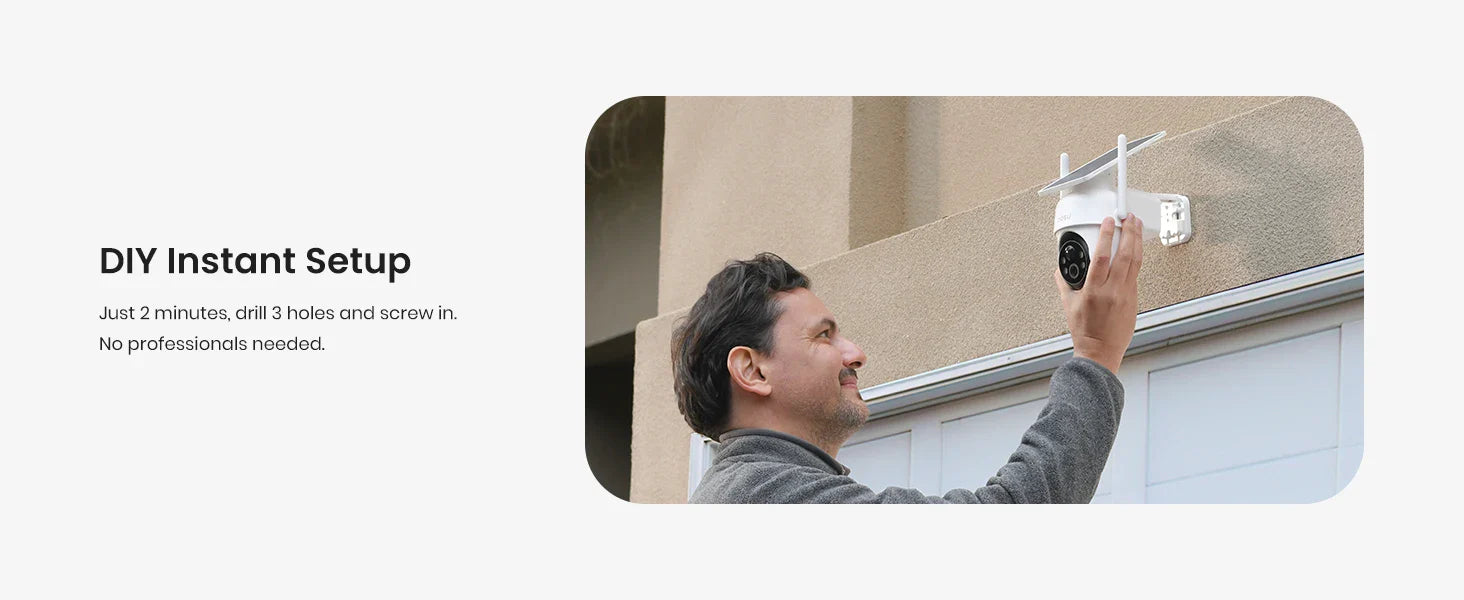 Built-in solar panel keeps the battery charged, 3 hours of sunlight daily keeps it running, even on rainy and cloud days. Install in any location just drill 3 holes, 5 minutes.