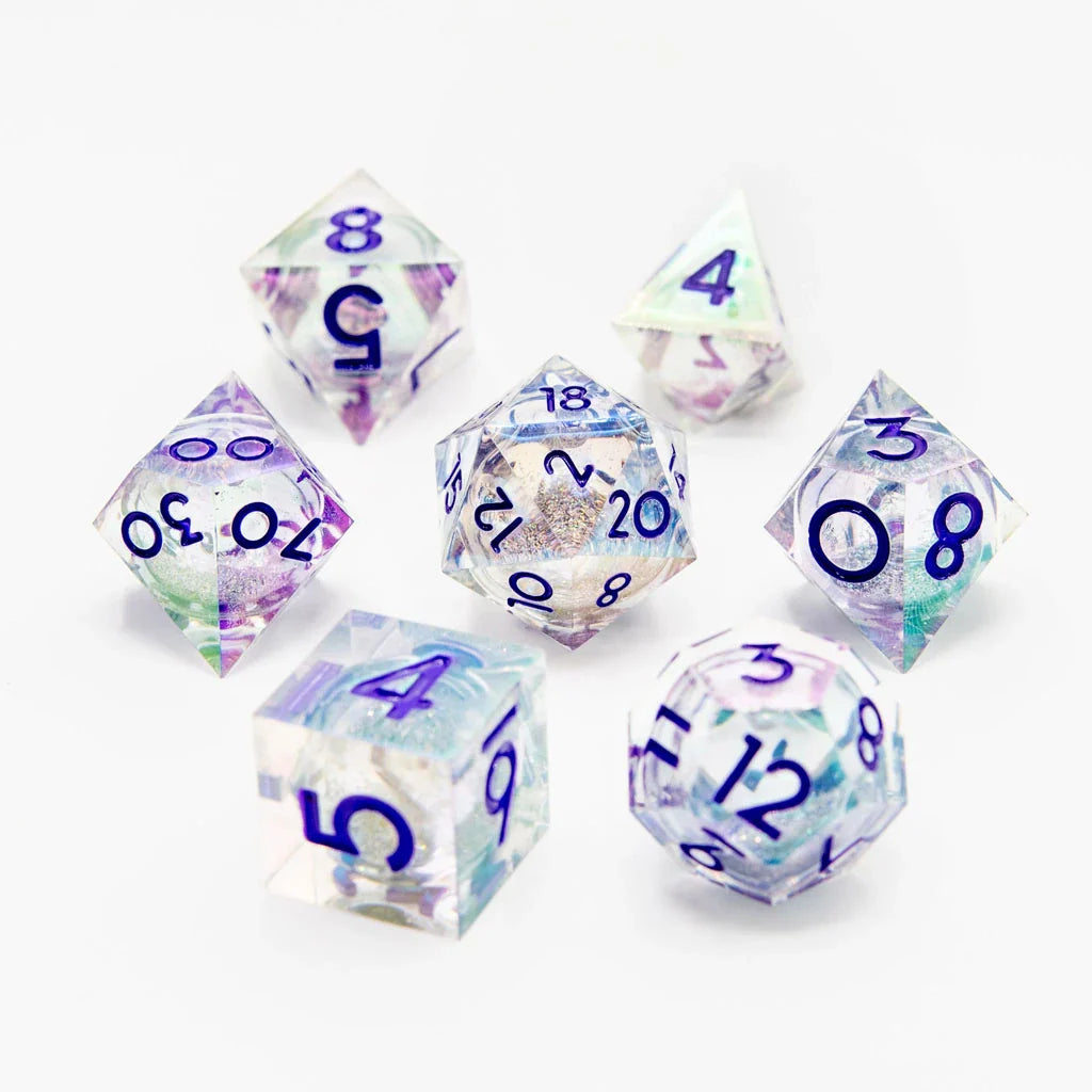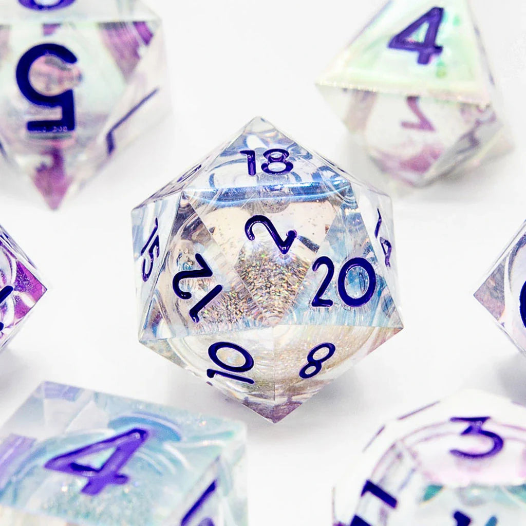 Embark on magical adventures with the Liquid Core Sharp Edged 7 Piece Set, where each roll brings a touch of spectacle and precision to your Dungeons and Dragons gameplay.