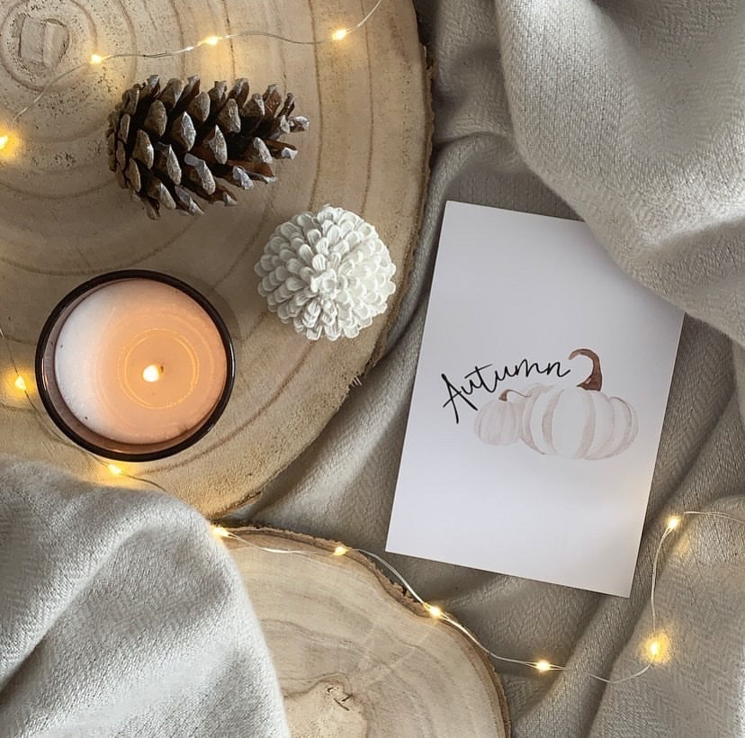 Autumn White Pumpkins Autumn Seasonal Wall Home Decor Print
