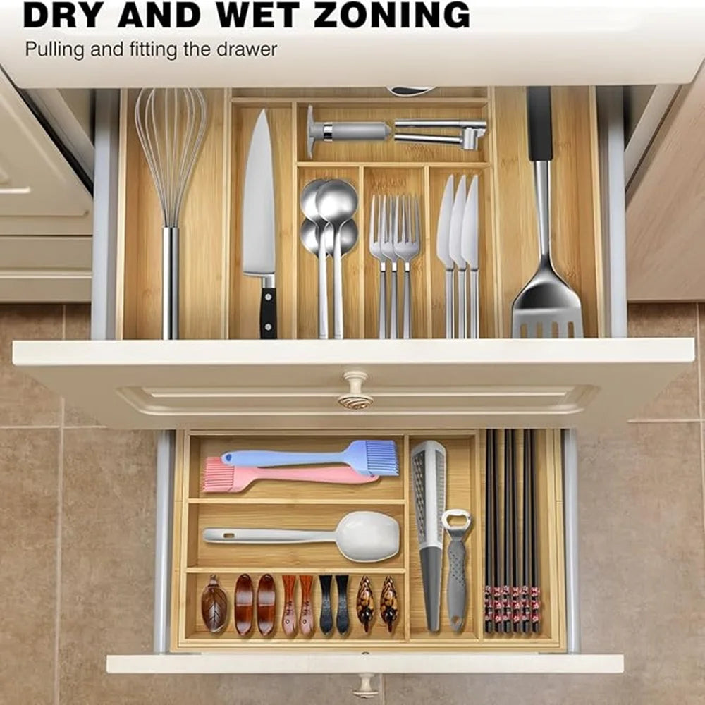 Bamboo Cutlery Expandable Divide Storage Trays Rack Neat Elegant Kitchen Drawer Organizer Furniture Accessories ,Picnicking out