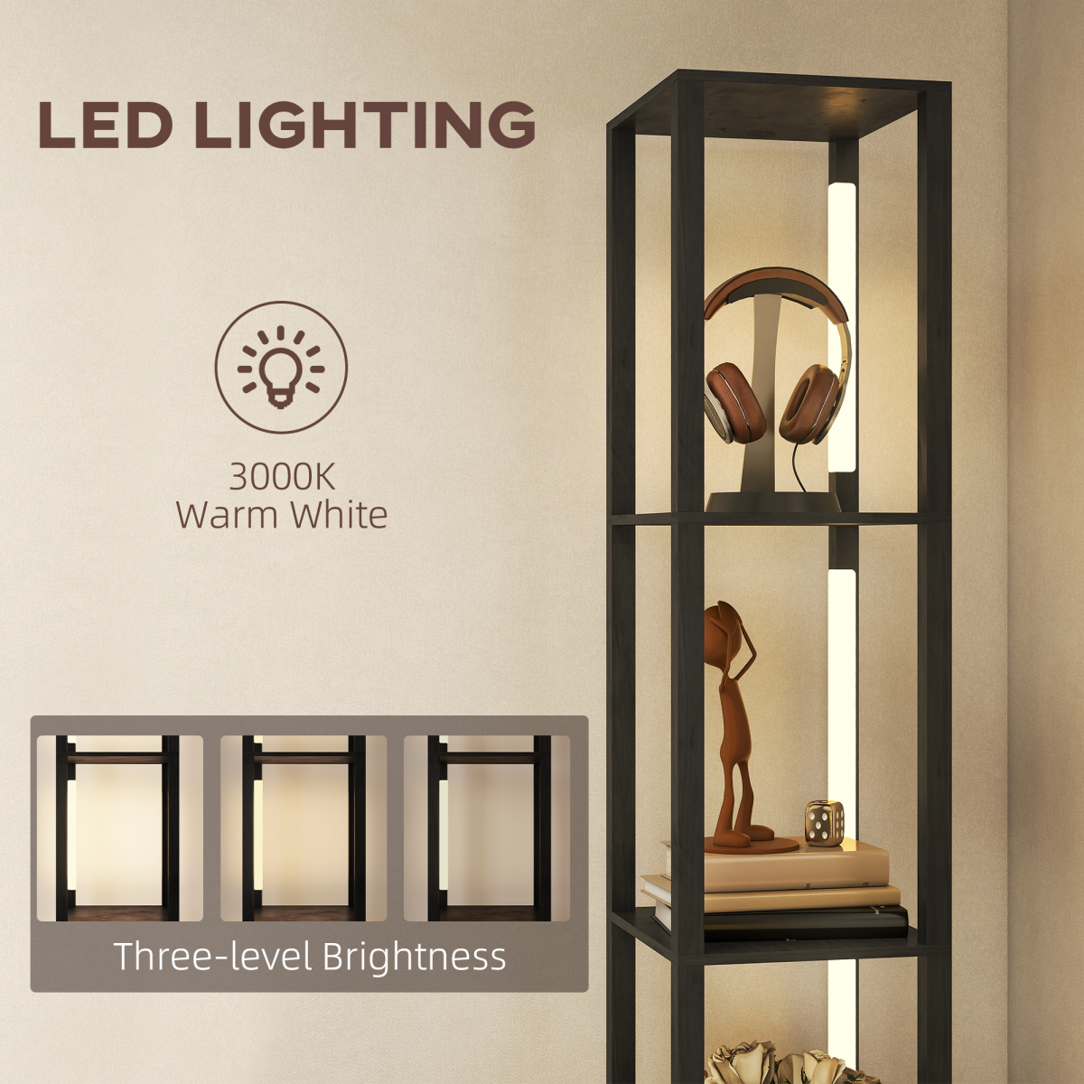 - 3-in-1 floor lamp integrates lighting, storage and display