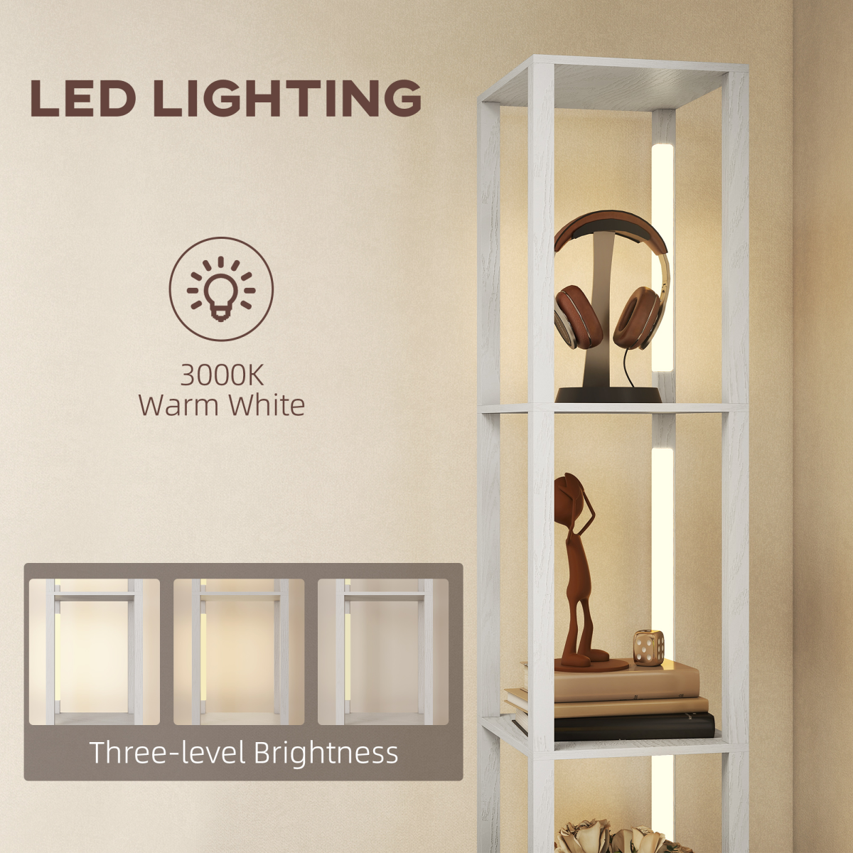 - 3-in-1 floor lamp integrates lighting, storage and display